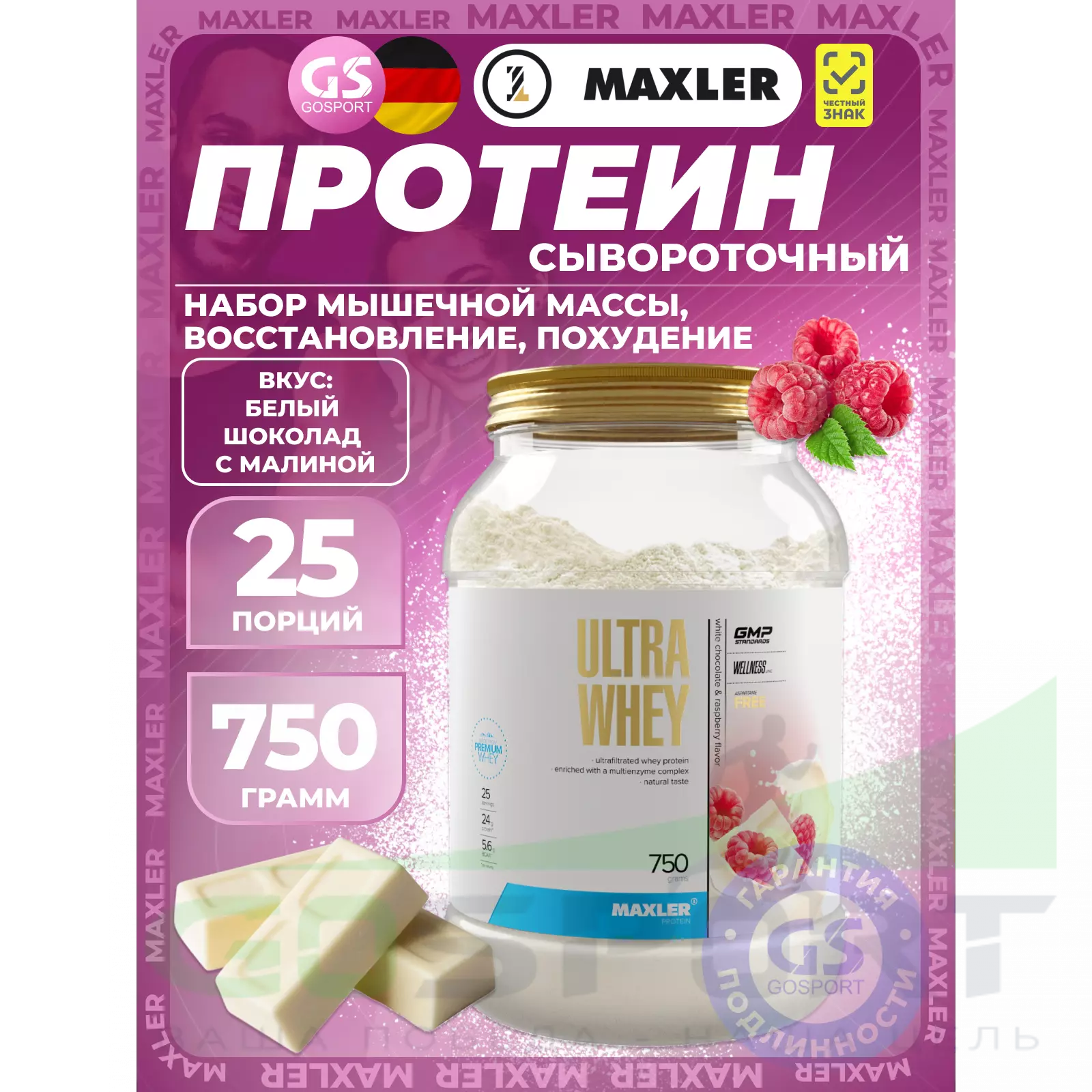 MAXLER Ultra Whey 750 г, Белый шоколад с малиной — Для роста и восстановления мышц