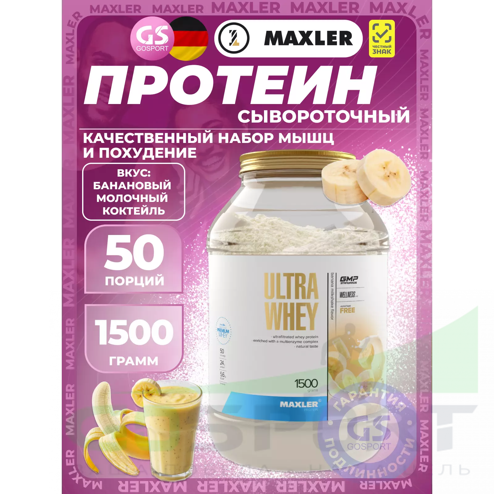 MAXLER Ultra Whey 1500 г, Банановый Молочный Коктейль — Для роста и восстановления мышц