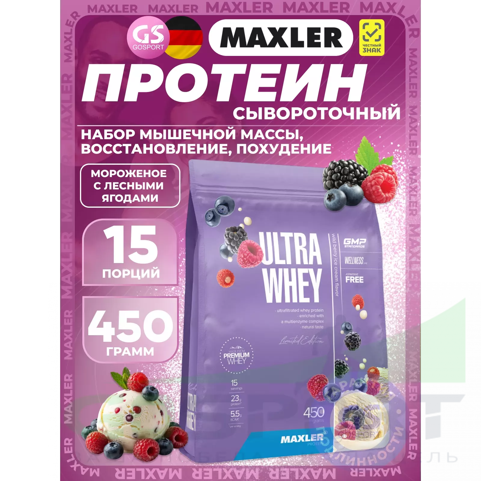 Ultra Whey 450 г, Мороженое с лесными ягодами