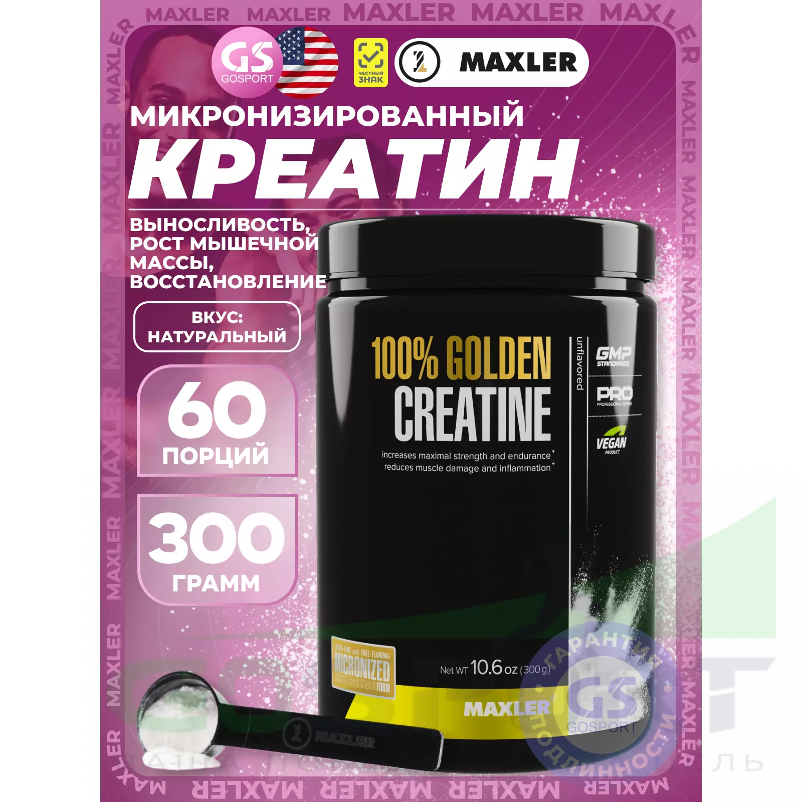 MAXLER 100% Golden Micronized Creatine 300 г, Натуральный — Обеспечение энергией организма