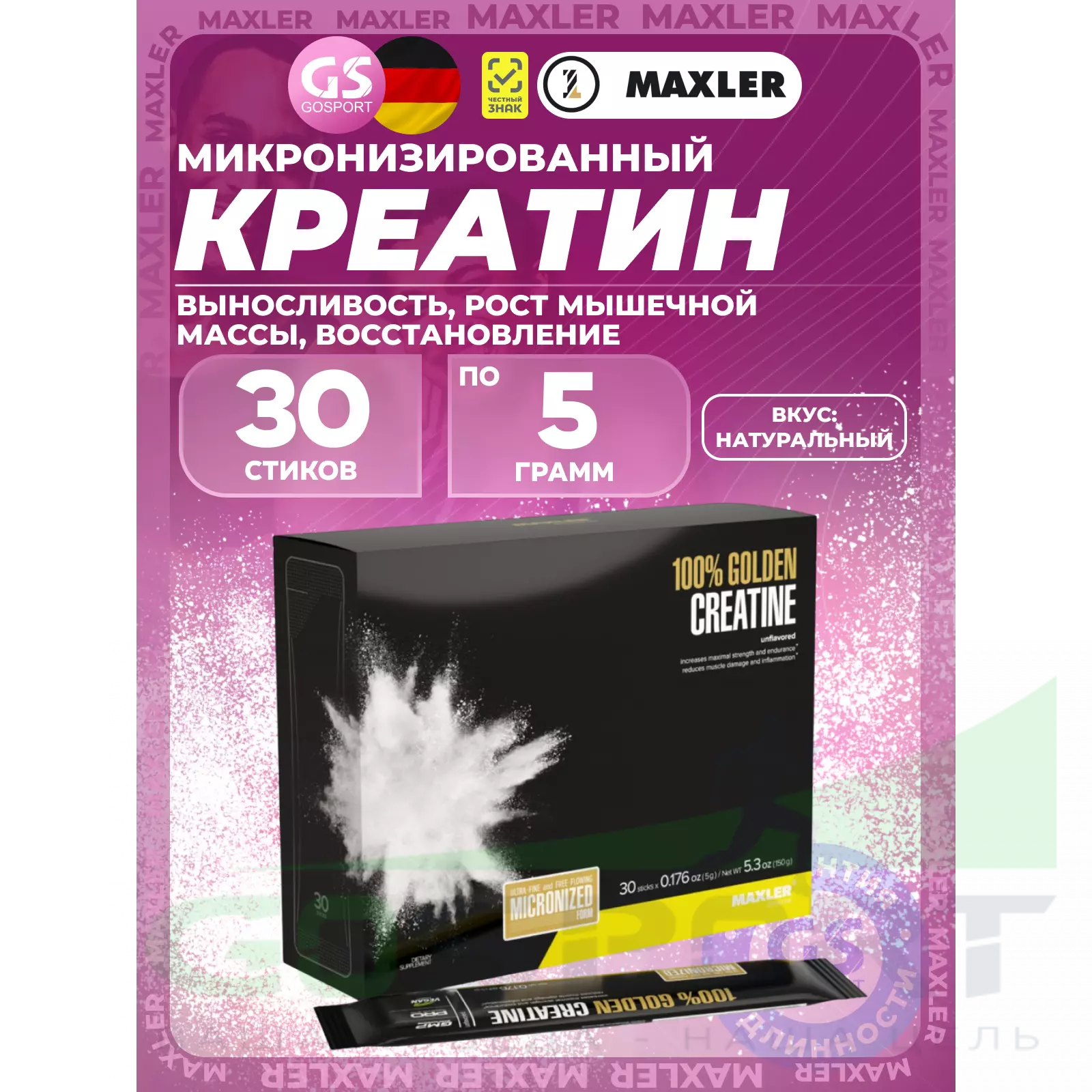 MAXLER 100% Golden Micronized Creatine 30 х 5 г, Натуральный — Обеспечение энергией организма