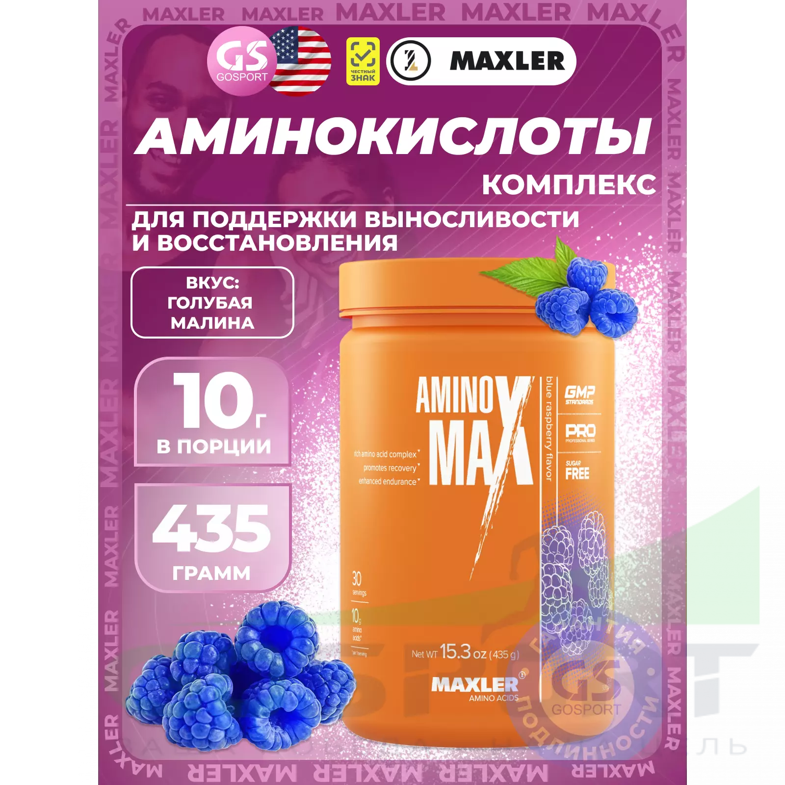 MAXLER Amino Max 435 г, Голубая малина — Для поддержки выносливости и восстановления