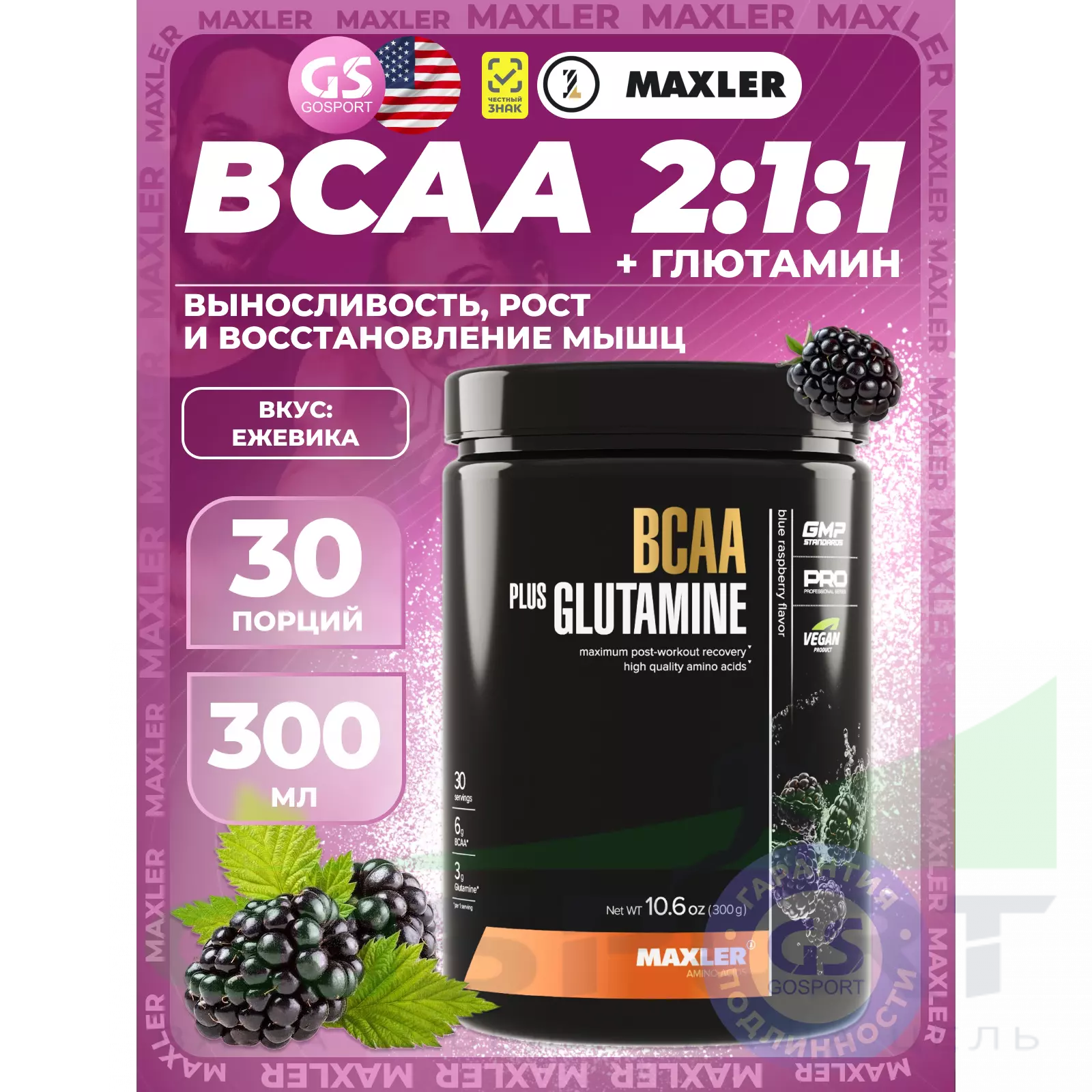 MAXLER BCAA 6000 mg + Glutamine 300 г, Ежевика — Выносливость, рост и восстановление мышц