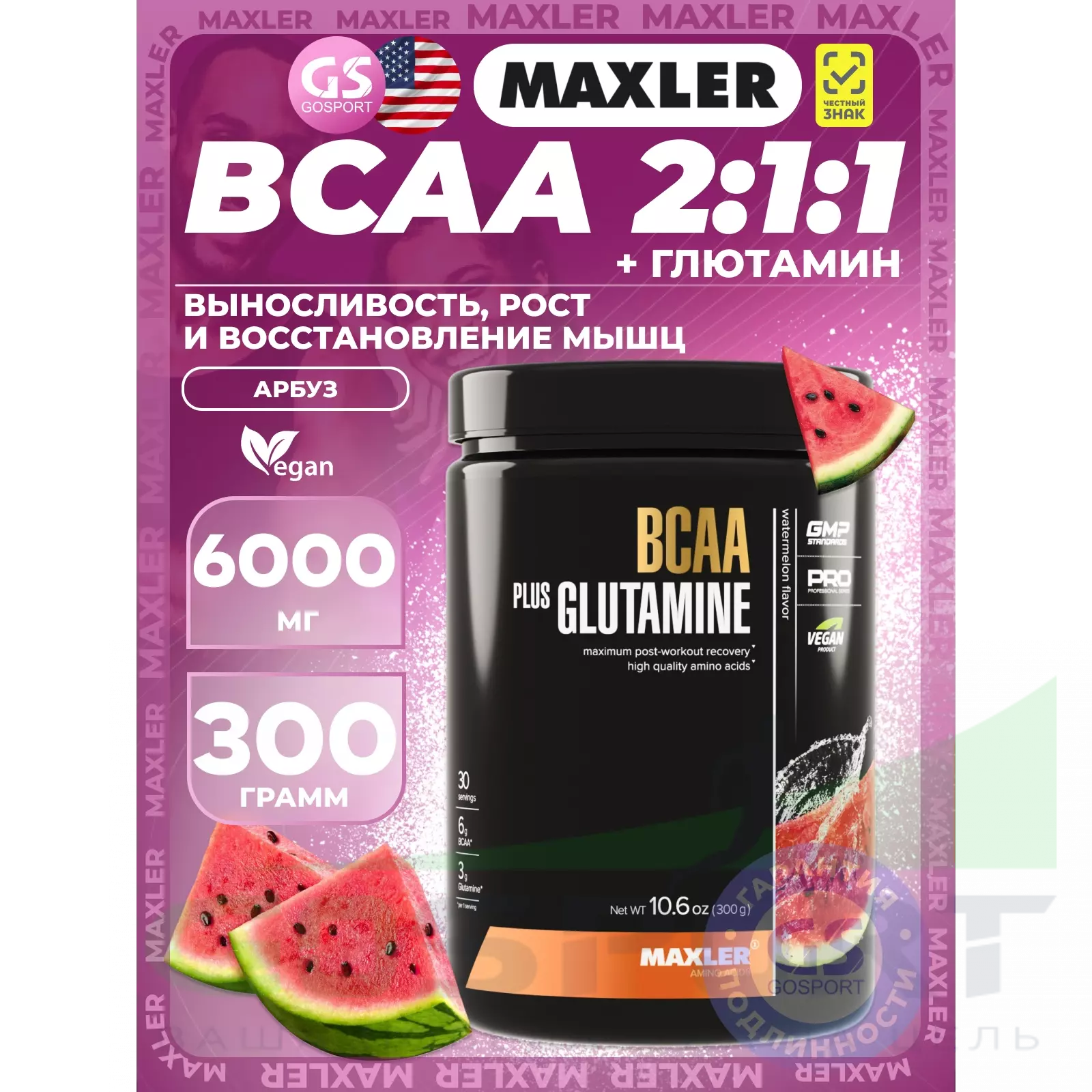 BCAA 6000 mg + Glutamine 300 г, Арбуз