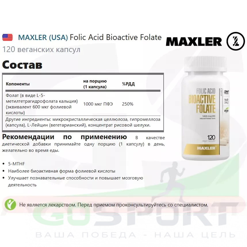 | Фолат (в виде L-5-метилтетрагидрофолата кальция) (эквивалент 600 мкг фолиевой кислоты) |
