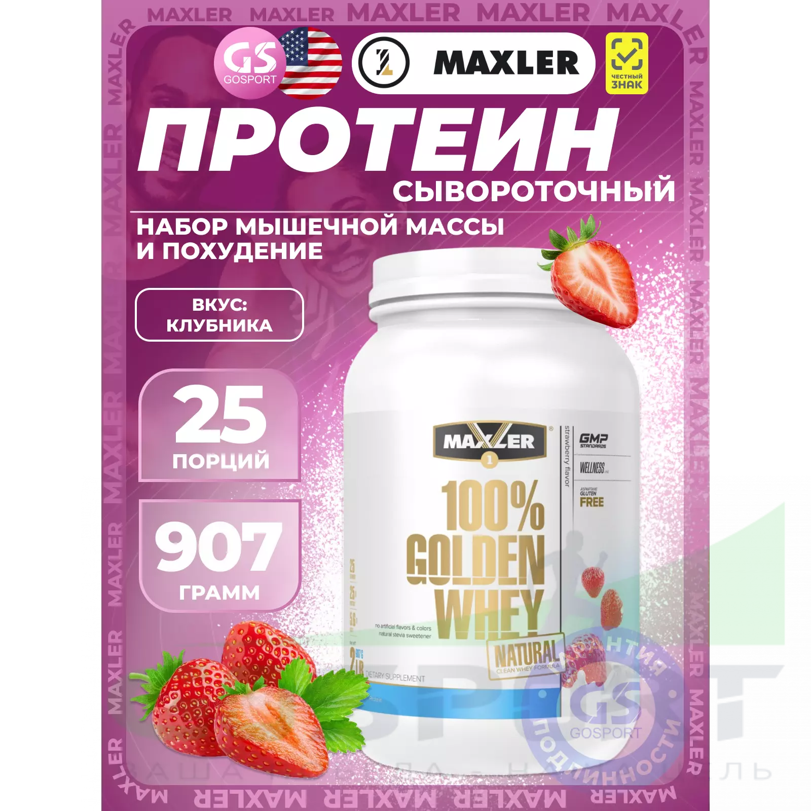 Golden Whey Natural 907 г, Клубника
