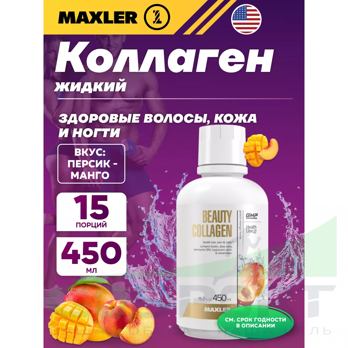 MAXLER Beauty Collagen 450 мл, Персик - Манго — Здоровые волосы, кожа и ногти