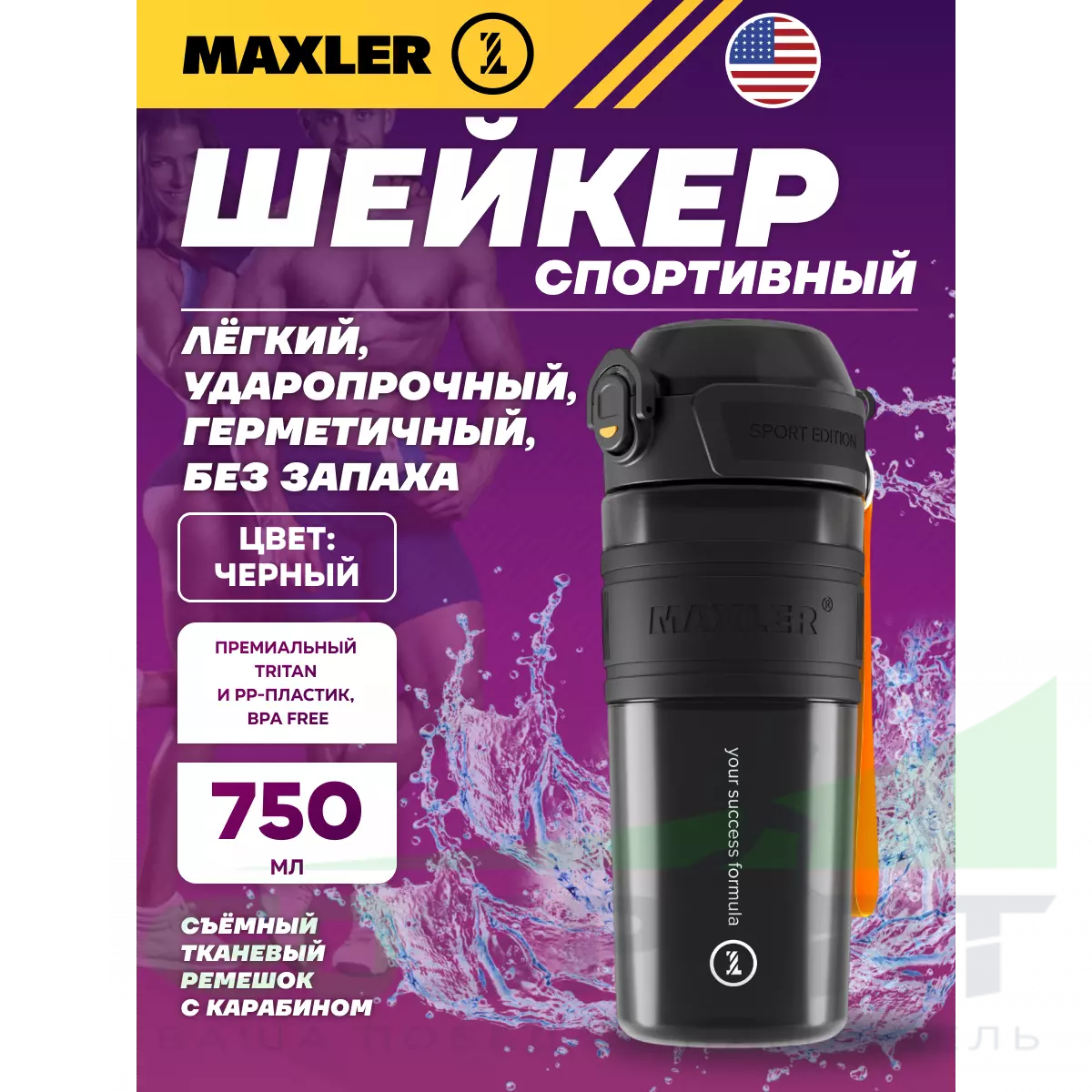 MAXLER Shaker Bottle Sport Edition 750 мл, Черный — Для протеиновых коктейлей и спортивного питания