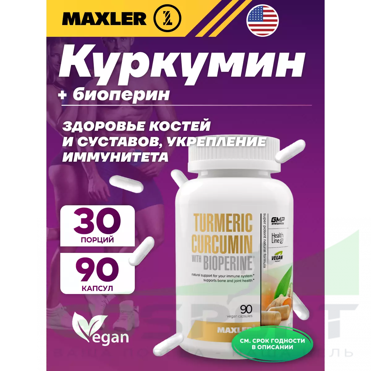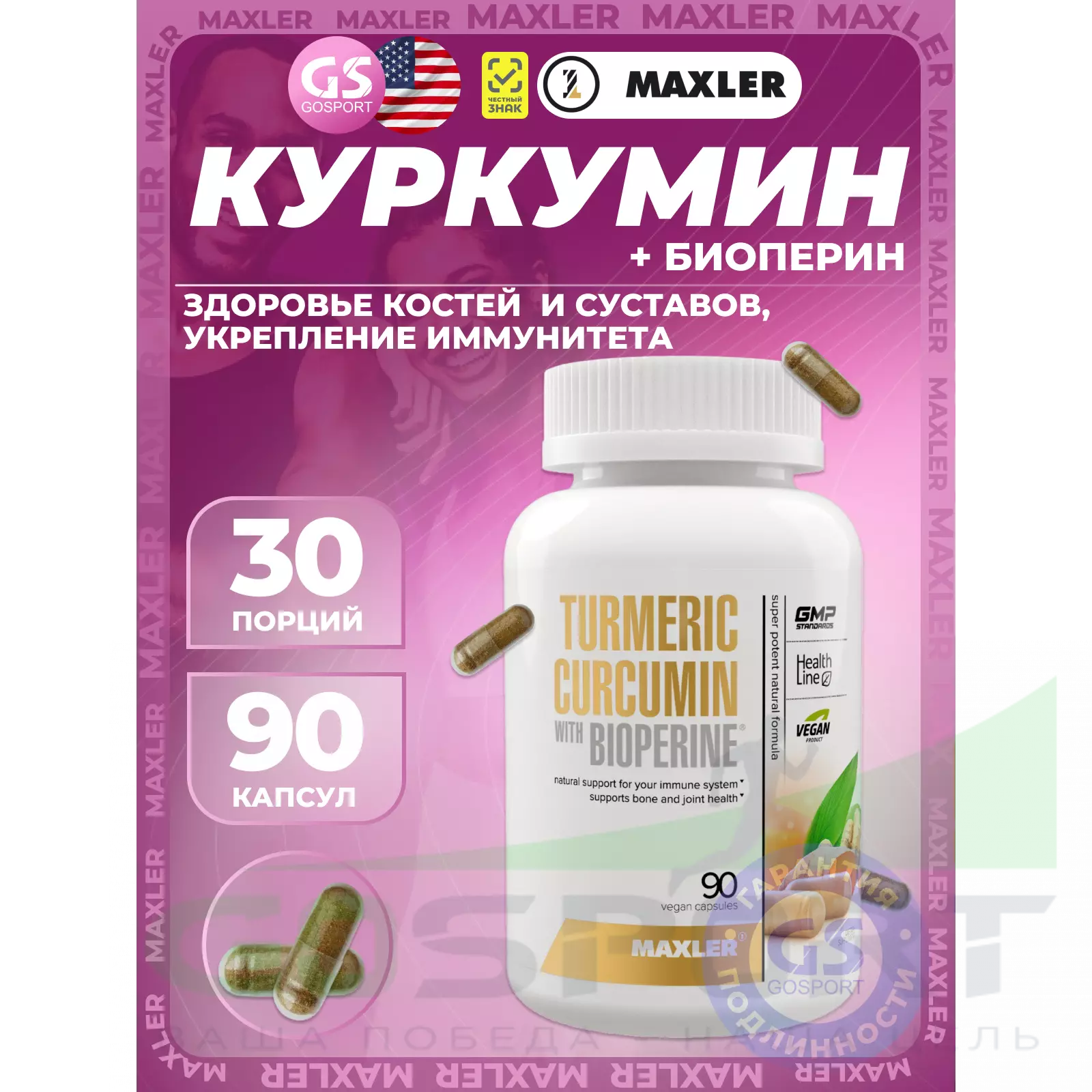 MAXLER Turmeric Curcumin with Bioperine 90 веган капсул — Здоровье костей и суставов, укрепление иммунитета