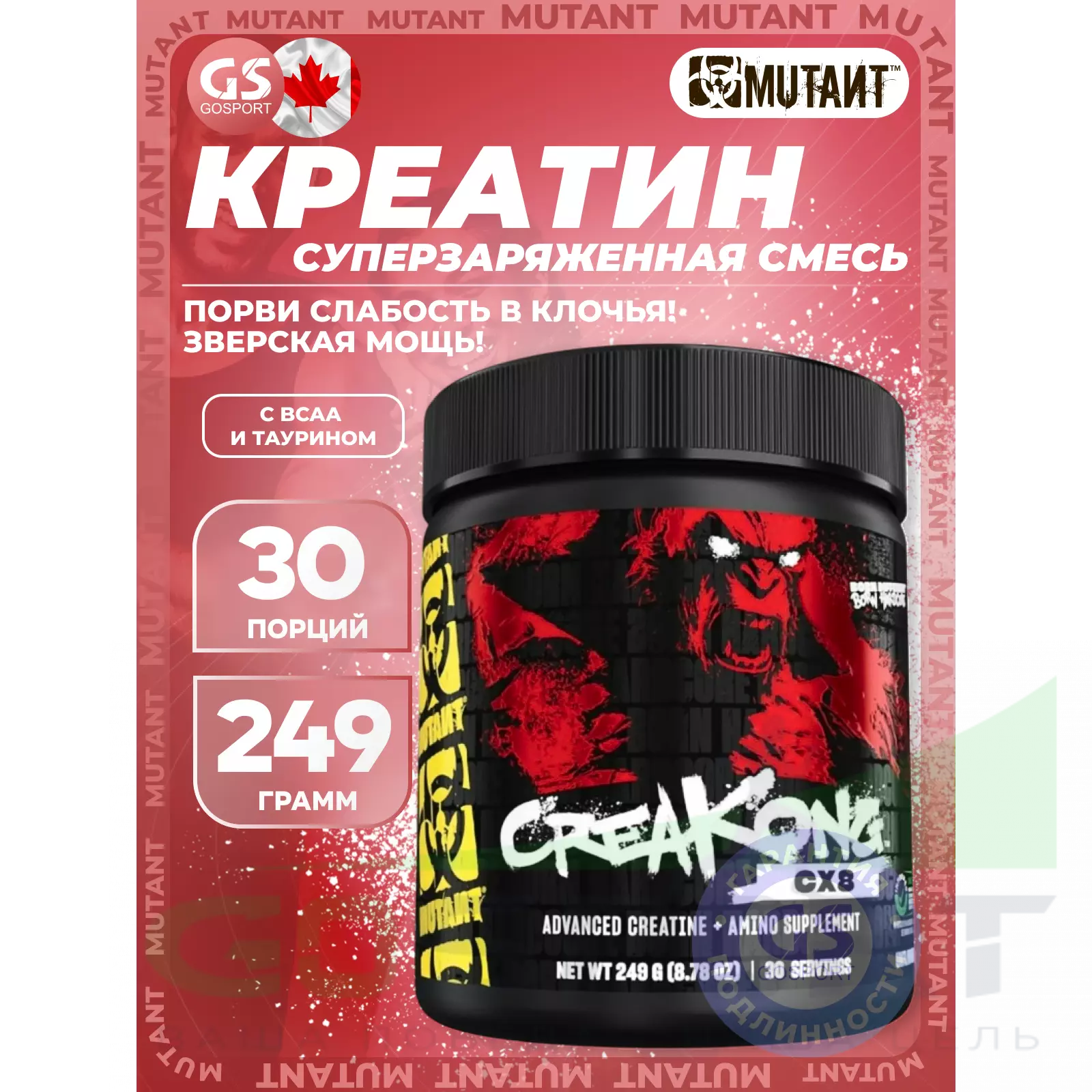 Новый CX8 Edition MUTANT CREAKONG содержит оригинальную мощную 4-граммовую креатиновую матрицу и дополняет ее дополнительной большой дозой из 4 аминокислот для наращивания мышечной массы и повышения производительности! И это еще не все: добавлены 3 аминокислоты, синтезирующие креатин, чтобы стимулировать усвоение. Эта тройная плюс поднимающей ваш Синтез Белка на Силу + Мышцы Унася Вас за пределы того, что мог бы сделать любой обычный креатин. Это называется технология CSM (матрица синтеза креатина). Triple Powered Creatine Turbo заряжает мышцы жизненно важными аминокислотами. Mutant Creakong - уникальный креатиновый комплекс, который предназначен для наращивания мышечной массы. В состав креатинового комплекса входят три запатентованные, формы креатина: Креатин моногидрат, Креатин малат, Креатин-магниевый хелат. Количество порций 30, в 1 порции (1 чайная ложка) 8.3 г. BCAA - Смесь аминокислот (Таурин-813 мг, быстрорастворимый порошок BCAA 2:1:1 (L-лейцин, L-изолейцин, L-валин))-1415 мг, КСА (Аминокислоты синтеза креатина) (Глицин-813 мг, L-аргинин, L-метионин)-994 мг. Ингредиентный состав: креатина моногидрат, таурин, глицин, L-лейцин, L-изолейцин, L-валин, L-аргинин, L-метионин, эмульгатор: лецитин. Информация об аллергенах: изготовлено на производстве, которое обрабатывает ингредиенты из молока, сои, рыбы (коллаген), древесных орехов (кокос). % от РСП: Таурин-203, Глицин-23. • Увеличение силы, мощности и выносливости | В ходе многочисленных исследований было клинически доказано, что креатин увеличивает силу, мощность и выносливость, а также дает другие значительные преимущества для мышц. • Быстро впитывающаяся мультикреатиновая смесь | этот усовершенствованный ускоритель креатина содержит 3 формы легко усваиваемого креатина - моногидрат, малат и хелат магния. • Ноль углеводов, сахара, наполнителей | Результаты и эффективность великолепны, но не в том случае, если они достигаются за счет вашего прогресса в питании. Эта сильная добавка не содержит наполнителей и калорий.