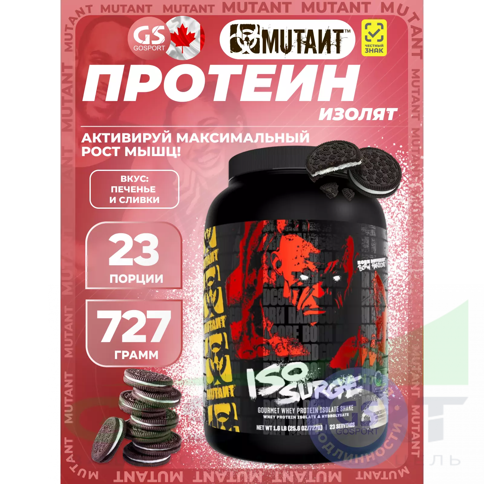 Mutant Iso Surge 727 г, Печенье и Сливки — Для набора и поддержки мышечной массы