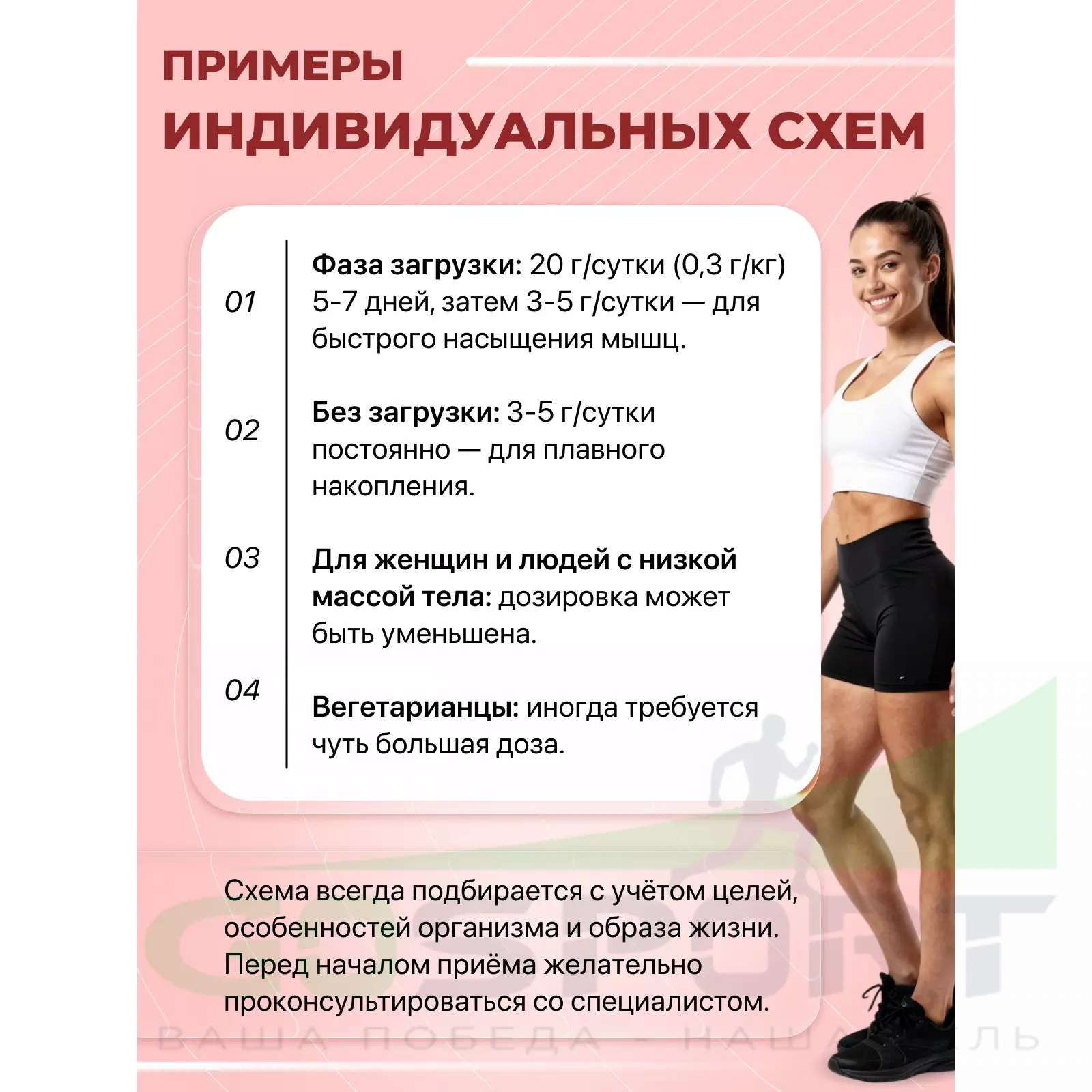Размешайте одну полную ложку продукта (4 г) в 250-350 мл воды и употребите за 20-30 минут до проведения тренировки. Не превышайте рекомендуемое количество. Цикл приема составляет 8 недель с последующим перерывом не менее 4 недель.