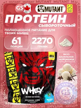 - Протеин MUTANT WHEY со вкусом клубничного крема, предназначен для роста крепких мышц, на 100% лучше, чем любой обычный сывороточный протеин. Рецептура MUTANT WHEY не сравнима ни с чем, что вы пробовали раньше.