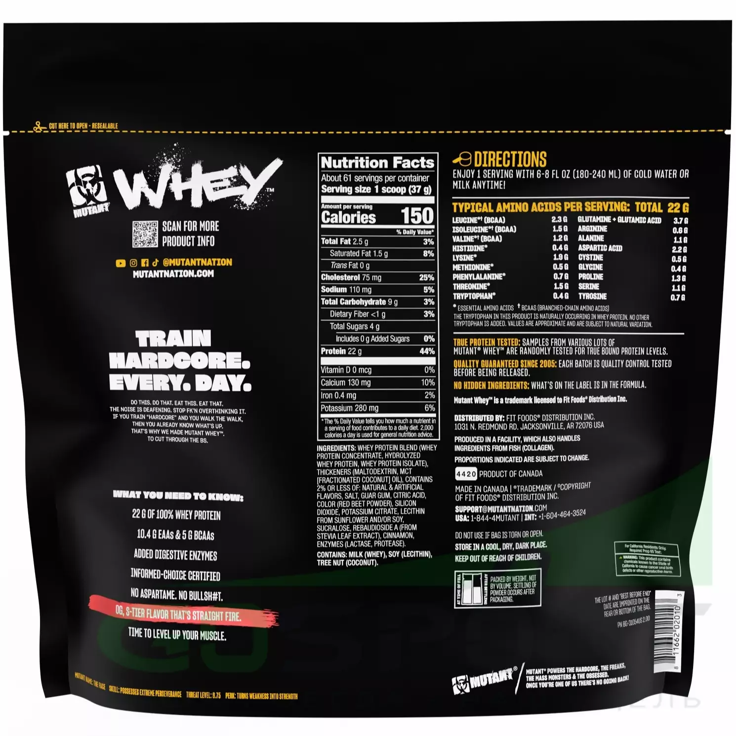 Данный продукт производится на лицензированных производственных мощностях, инспектируемых соответствующими федеральными органами Канады в отношении GMP (Правил организации производства и контроля качества продукции). Протокол GMP применяется при производстве пищевой, фармацевтической и медицинской продукции. Это гарантирует вам отличное качество и безопасность каждой порции MUTANT WHEY.