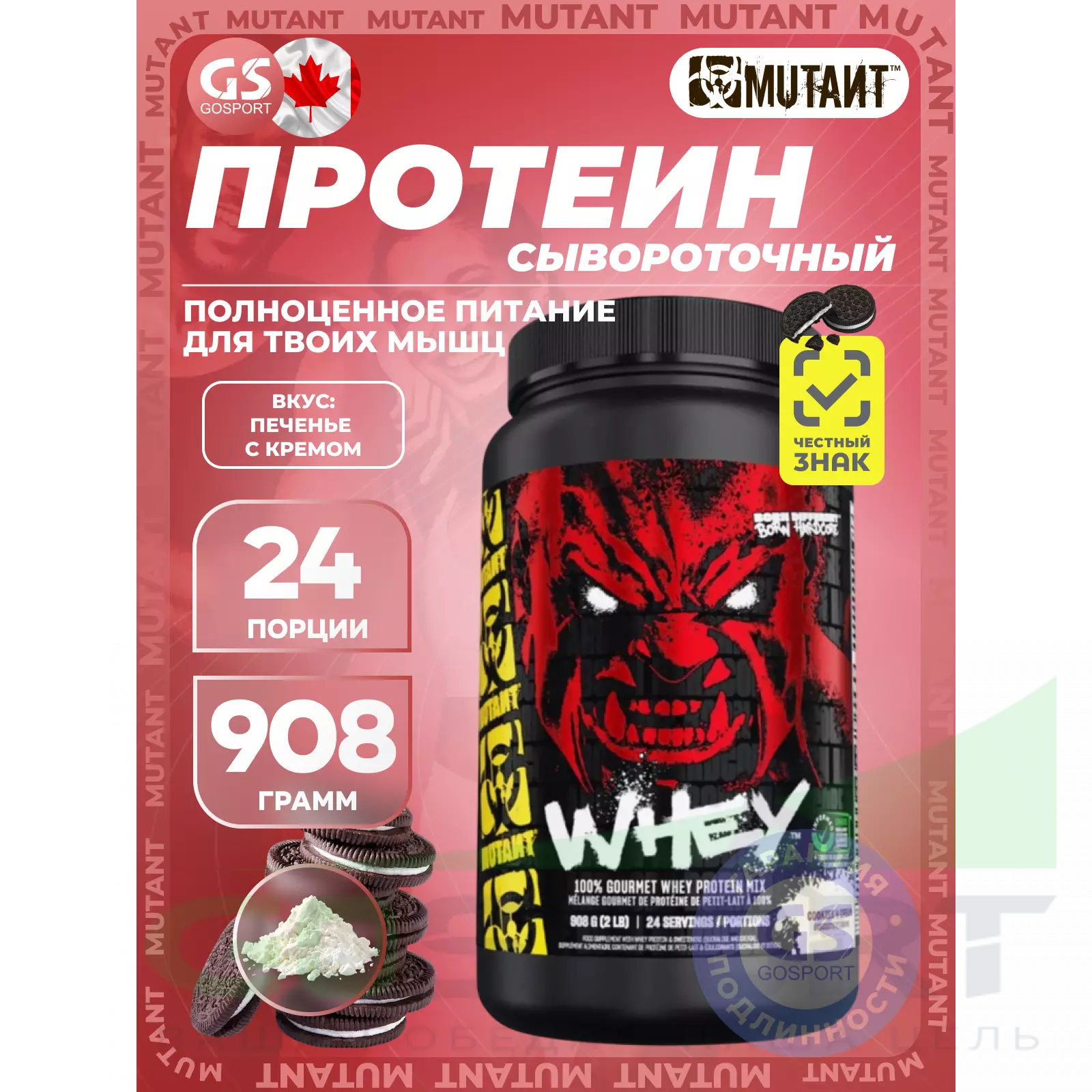 Mutant Whey 908 г, Печенье с Кремом — Для набора мышечной массы и восстановления