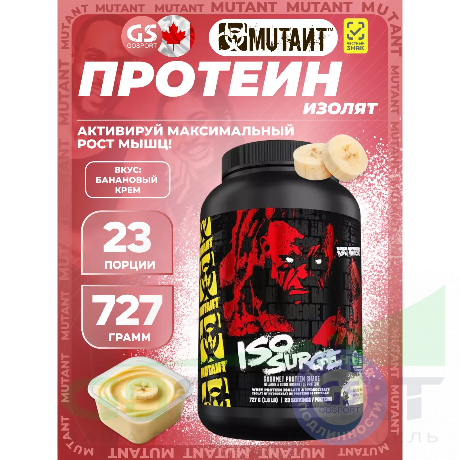 Mutant Iso Surge 727 г, Банановый крем — Для набора и поддержки мышечной массы