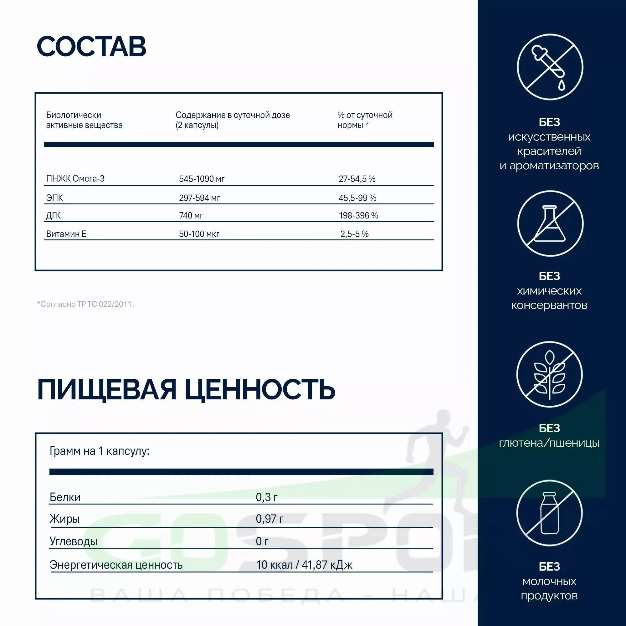 - Здоровье сердца и кровообращения — ЭПК + ДГК поддерживают нормальный холестерин, давление и сердечно-сосудистый баланс.