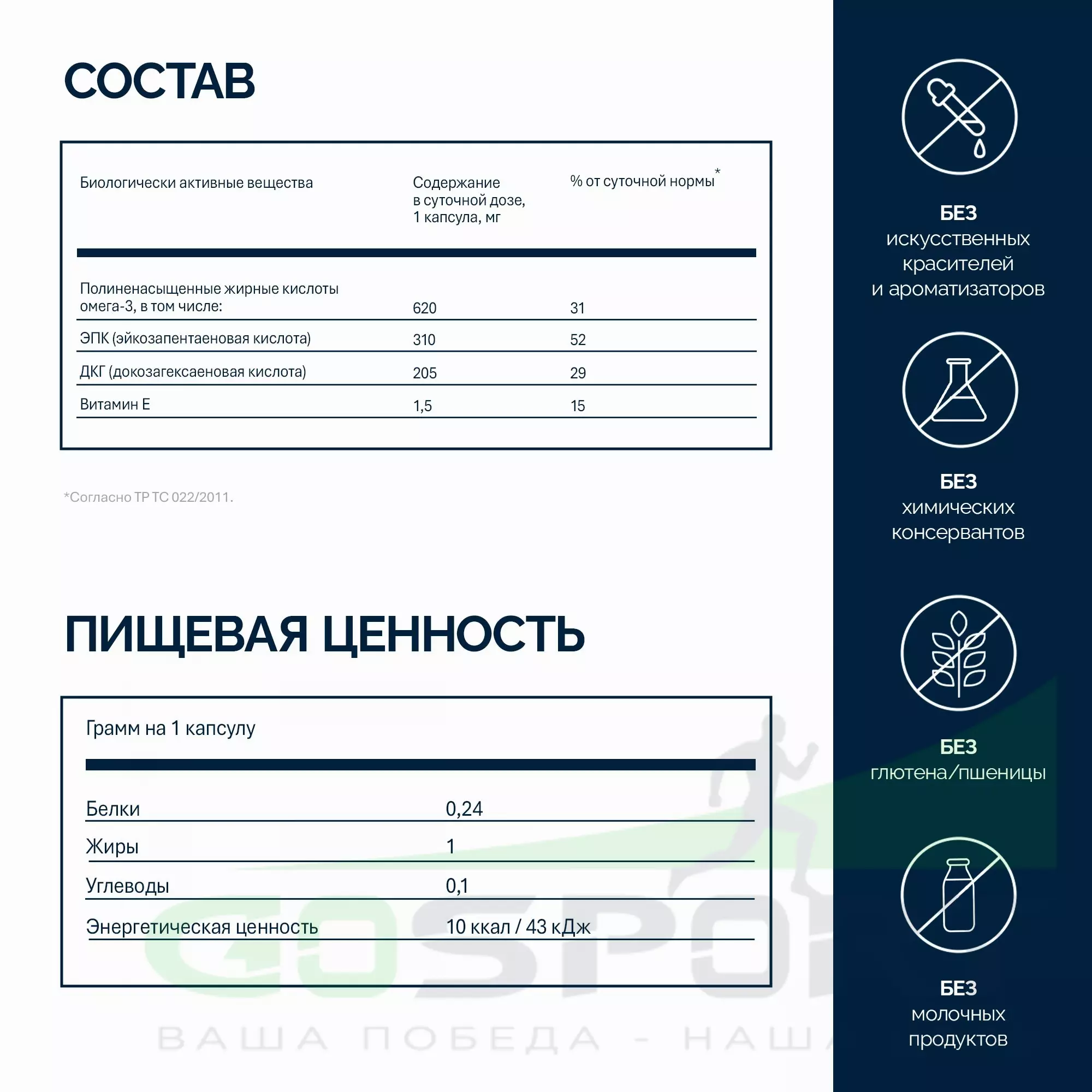 Форма Омега-3 ПНЖК - этиловые эфиры имеют более высокую концентрацию Омега-3 ПНЖК (по сравнению с натуральными триглицеридами), что способствует более быстрому восстановлению уровня Омега-3 в организме.