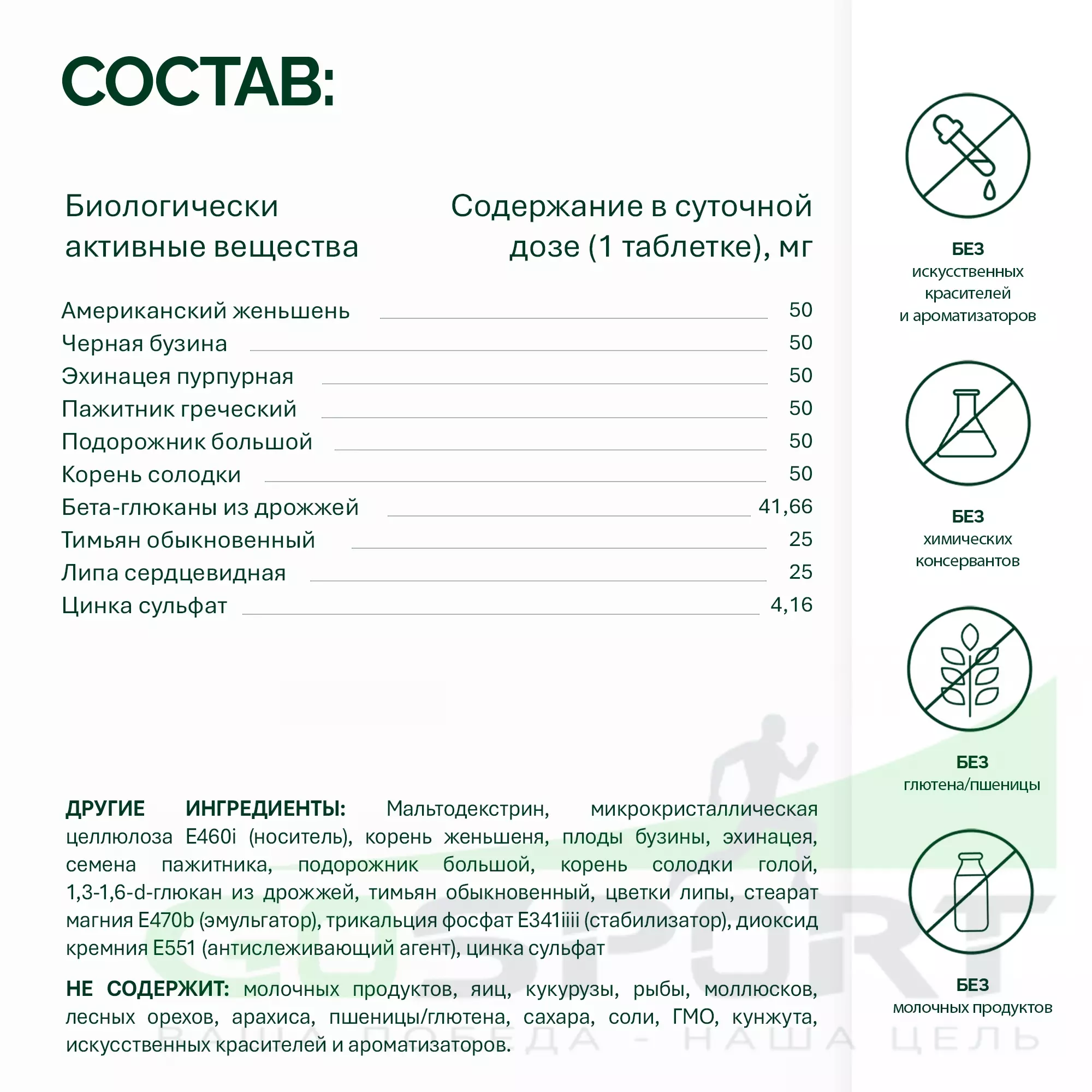 - Восстановление, Выносливость, Иммунная защита, Энергия