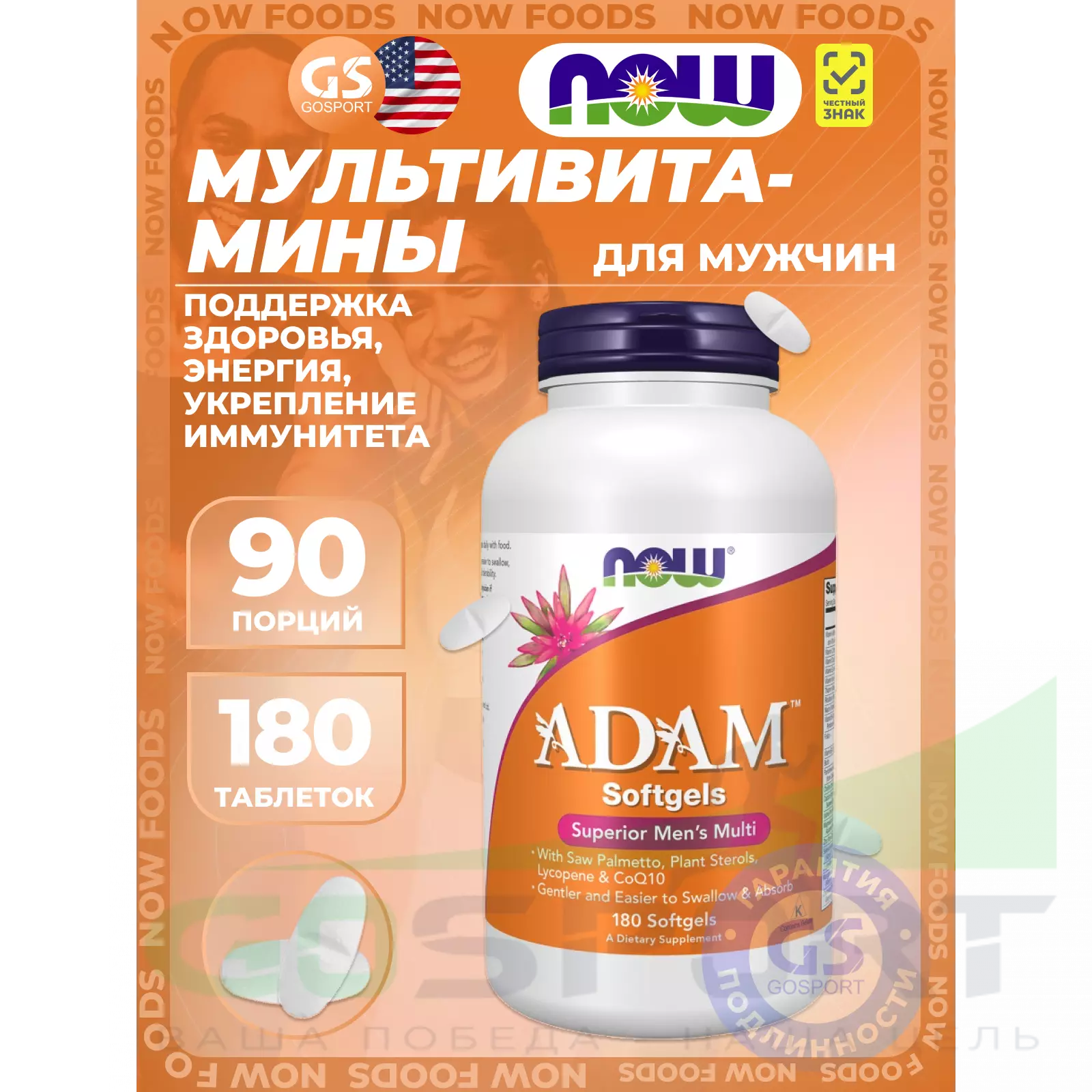 NOW Foods Adam 180 гелевых капсул — Поддержка здоровья, энергия, укрепление иммунитета