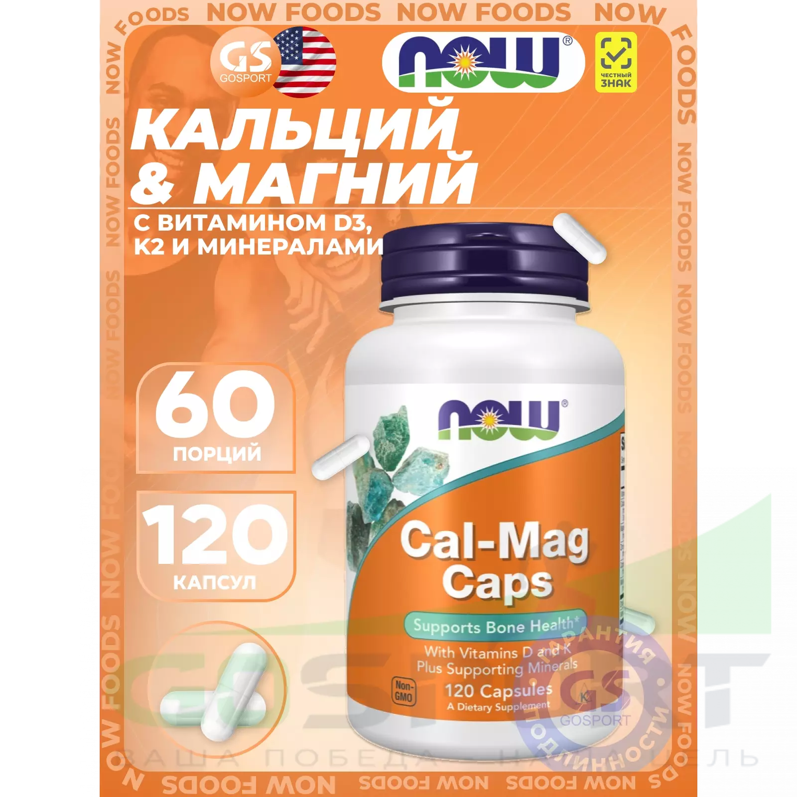 Описание NOW Foods Cal-Mag Caps, Кальций и Магний + Витамин D-3