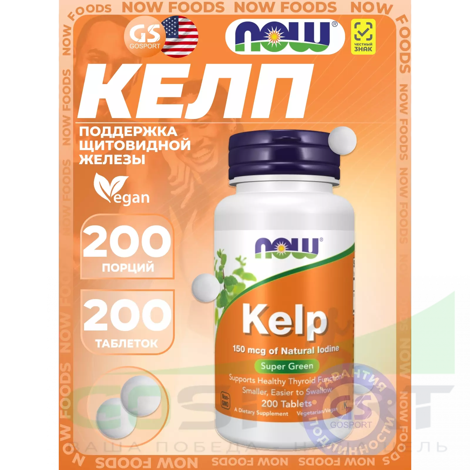 Описание NOW Foods Kelp - Йод в таблетках 150 мкг
