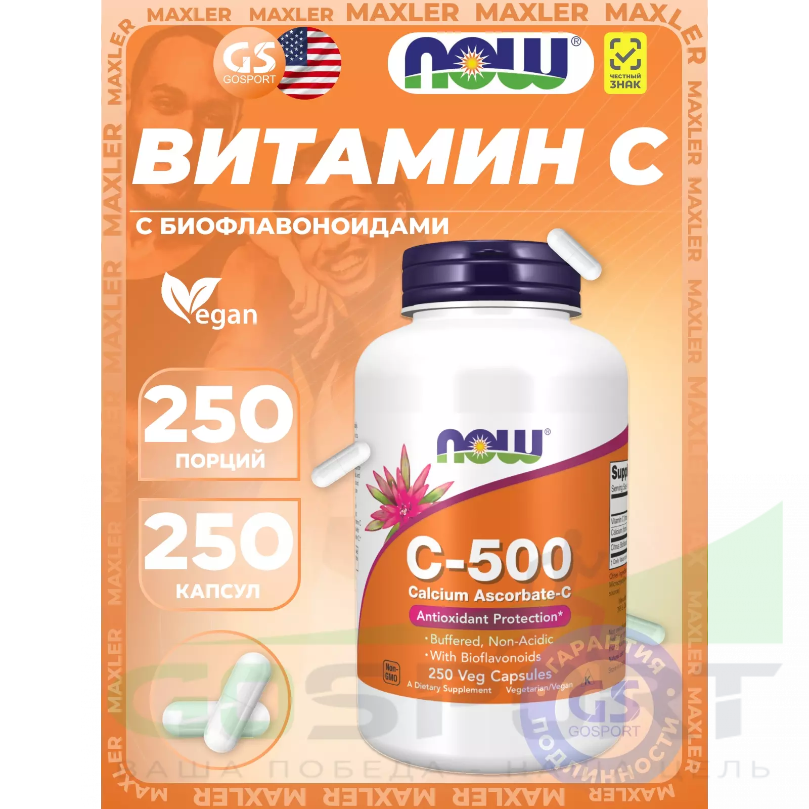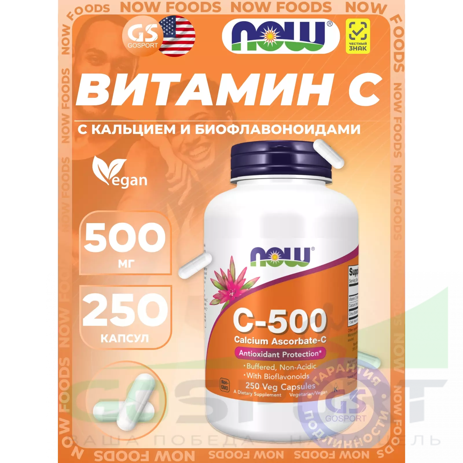 Описание NOW Foods C-500 Calcium ASCORBATE-C