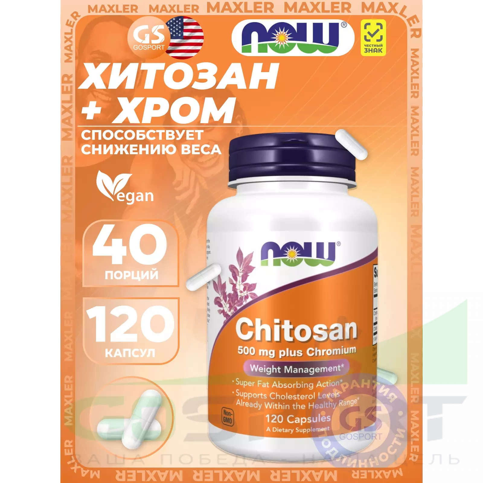 Описание NOW Foods Chitosan Plus Chromium 500 мг