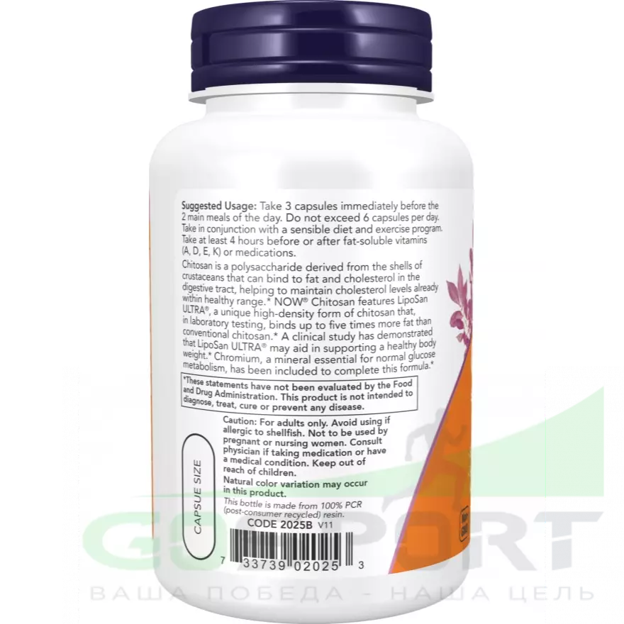 Хитозан – это получаемая из панциря ракообразных разновидность мягкой клетчатки, которая в пищеварительном тракте связывается с жирами и выводит их из организма. NOW Chitosan 500mg Plus Chromium содержит LipoSan ULTRA – запатентованную высококонцентрированную форму хитозана, которая связывает в пять раз больше жира, чем другие комплексы на основе данного соединения. Опубликованные клинические испытания продемонстрировали, что LipoSan ULTRA способствует поддержанию веса и уровня холестерина в пределах нормы. Кроме того, производитель включил в состав его формулы хром, который в соединении с инсулином сохраняет оптимальный уровень глюкозы и играет особую роль в расходовании белков, жиров и углеводов.