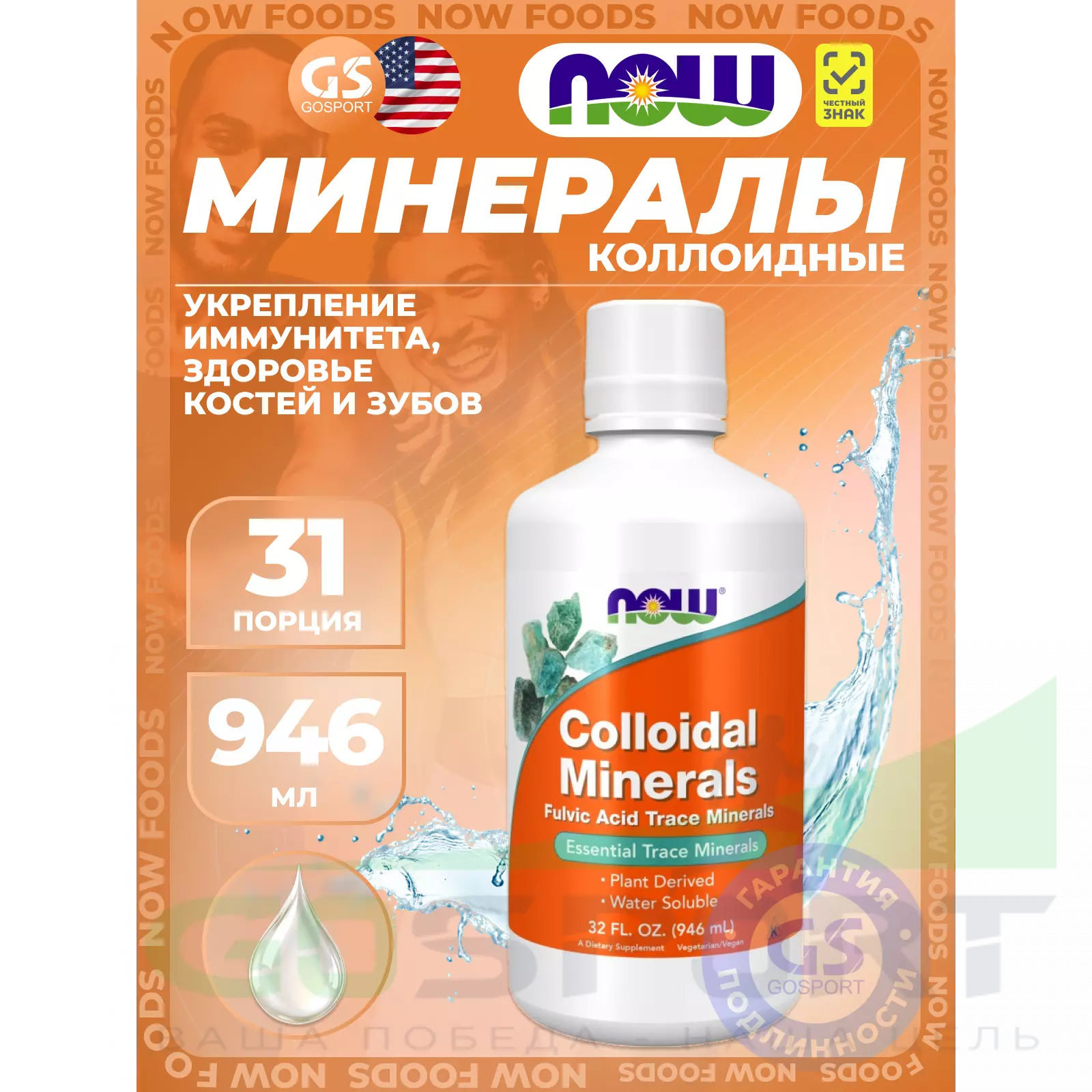 NOW Foods Colloidal Minerals 946 мл — Укрепление иммунитета, здоровье костей и зубов