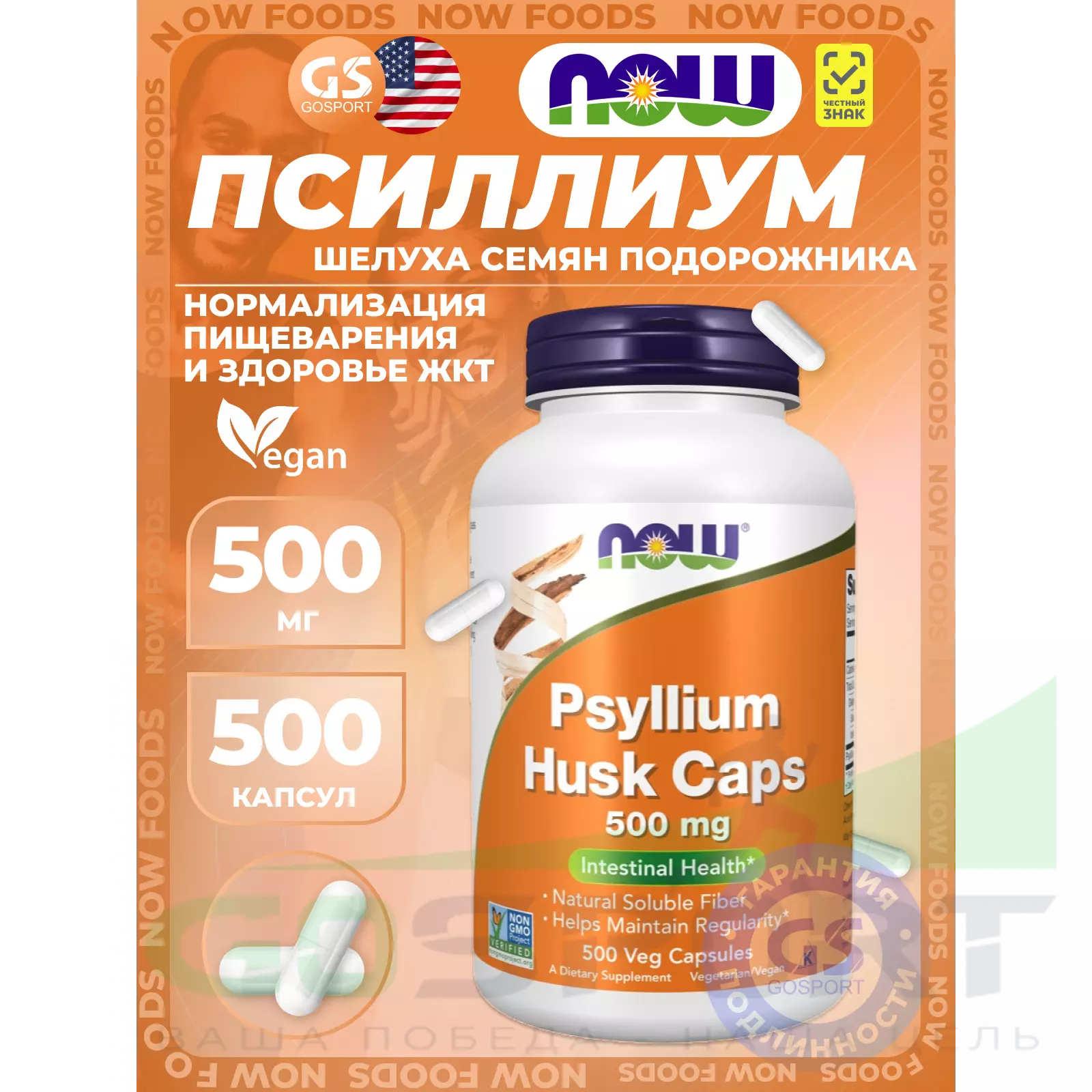 NOW Foods Psyllium Husk Caps 500 mg 500 веган капсул — Нормализация пищеварения и здоровье ЖКТ