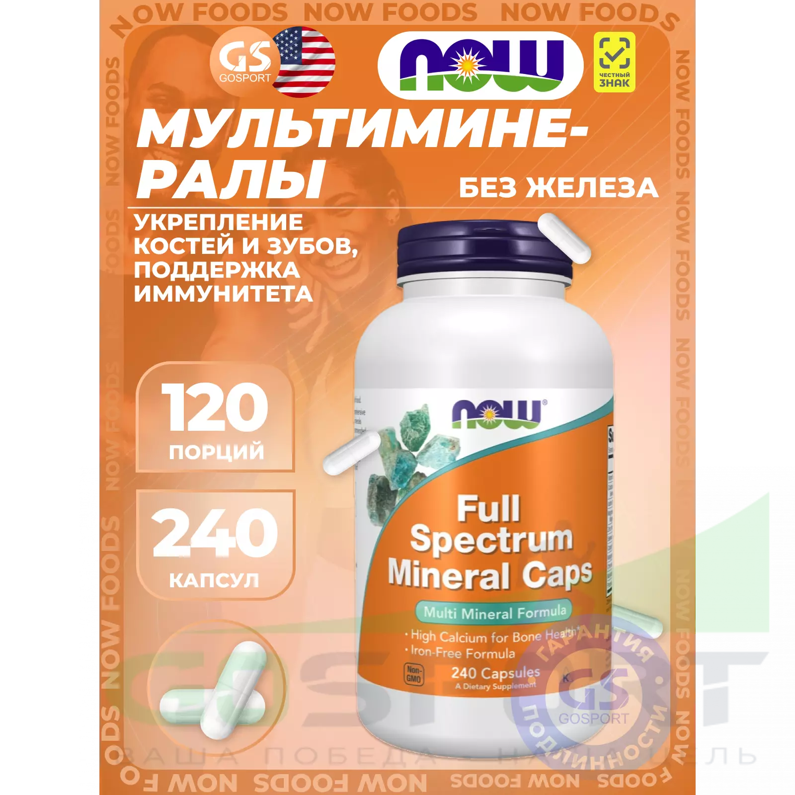 NOW Foods Full Spectrum Minerals Caps 240 веган капсул — Укрепление костей и зубов, поддержка иммунитета