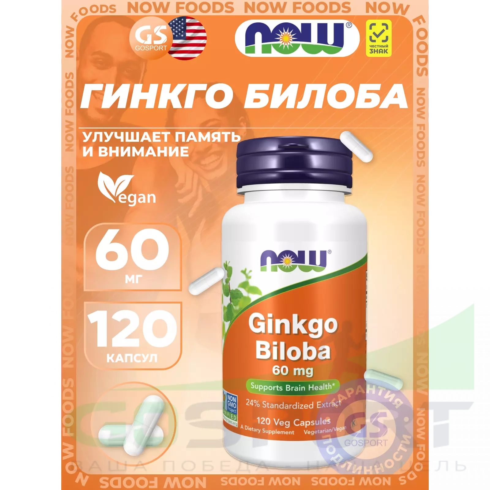 Описание NOW Foods Ginkgo Biloba 60 mg