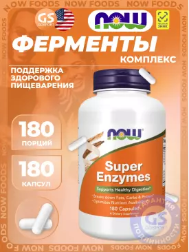 Супер Энзимы – это целевая комбинация ферментов растительного (из папайи и ананаса) и животного происхождения, обеспечивающая переваривание белков, углеводов (простых и сложных), жиров при недостаточности желудочной и кишечной секреции; применяемая при хронических дегенеративных заболеваний пищеварительной системы, ферментной недостаточности желудочно-кишечного тракта, для укрепления иммунитета, снятия воспалительных процессов, очистки кровеносного русла.