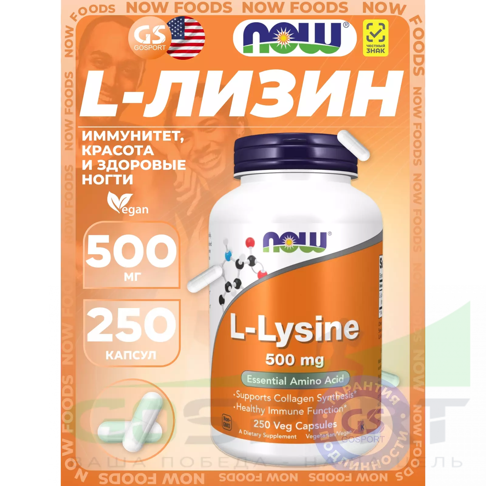 Описание NOW Foods L-Lysine 500 mg