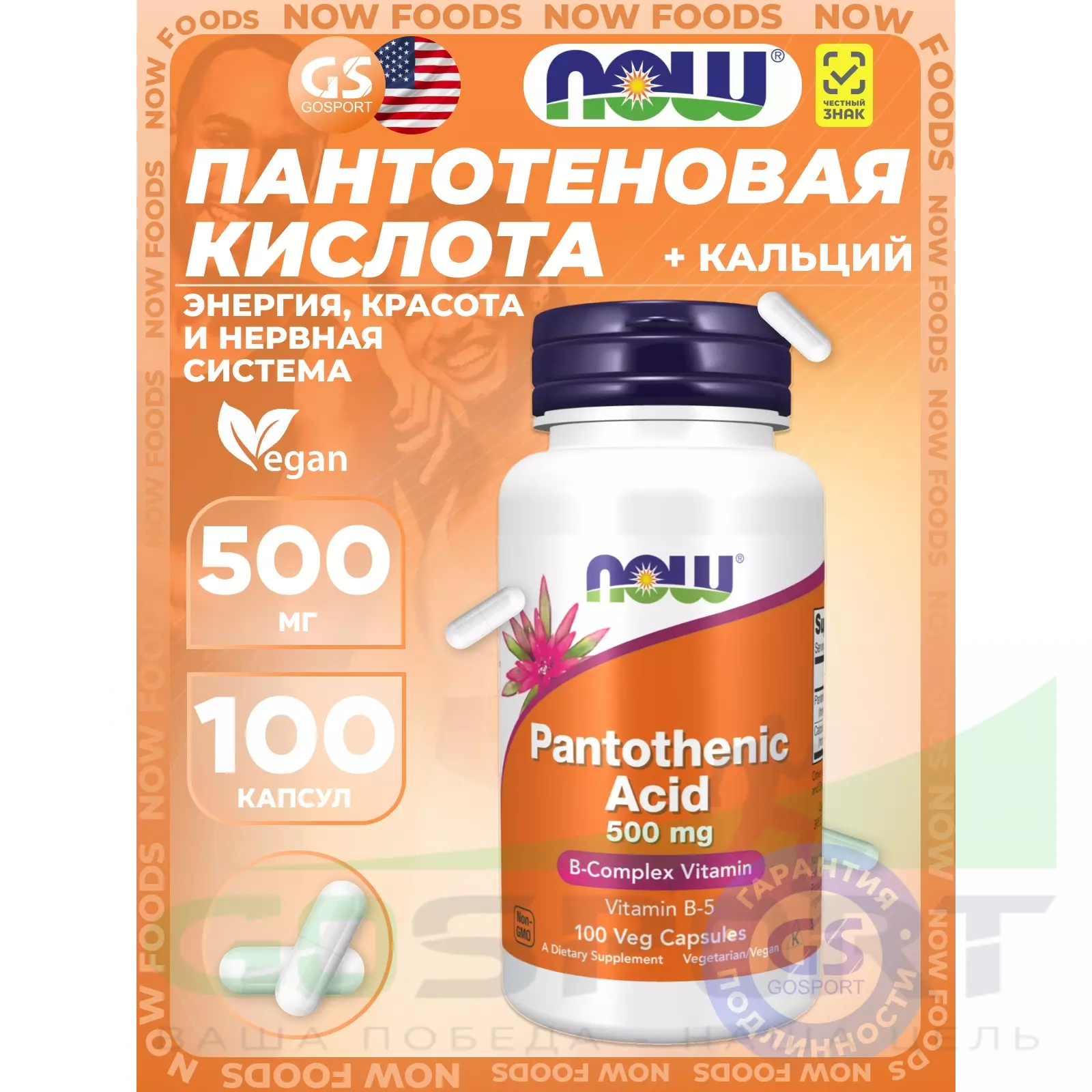 NOW Foods Pantothenic Acid 500 mg Vitamin B-5 100 веган капсул