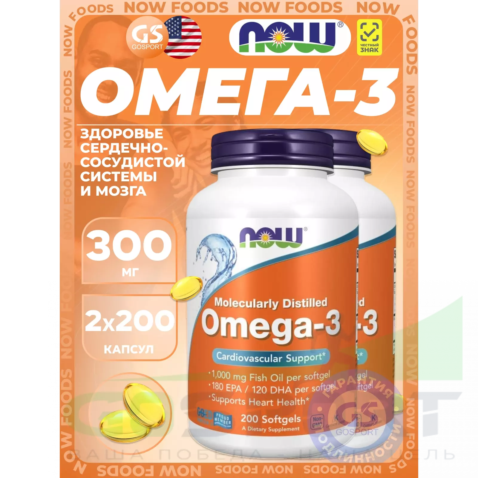 БАД «Омега-3» (Now, 200 капсул) помогает: