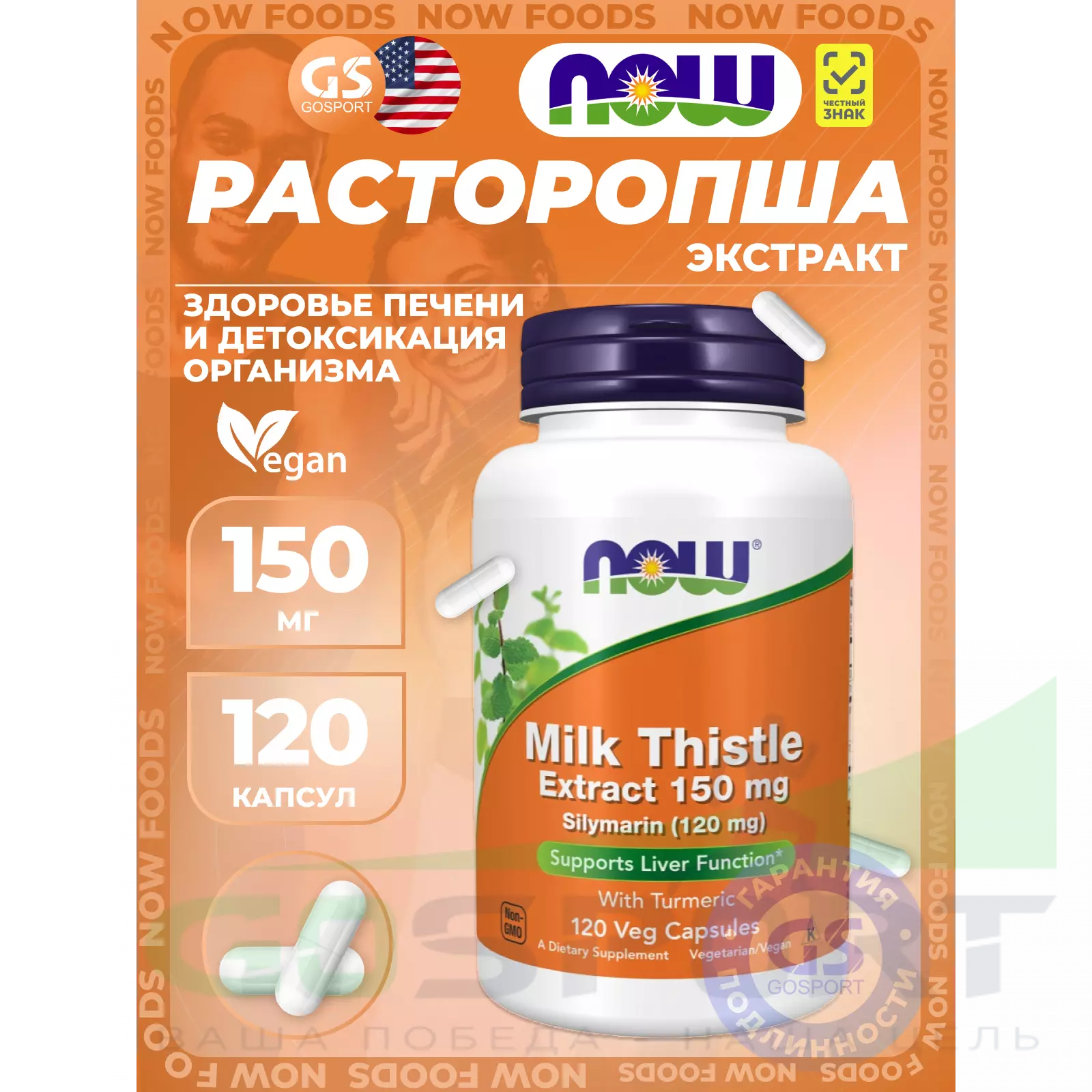NOW Foods Milk Thistle Extract 150 mg (Silymarin 150 mg) 120 веган капсул — Здоровье печени и детоксикация организма