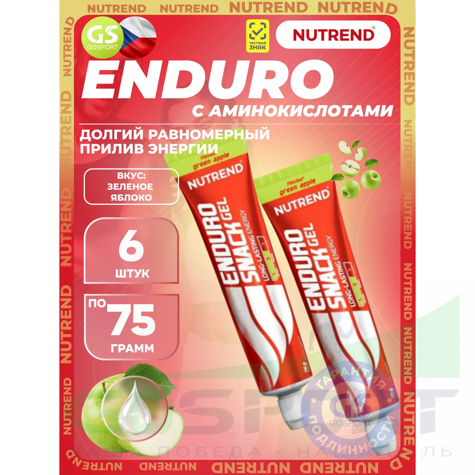 EnduroSnack 6 x 75 г, Зеленое яблоко