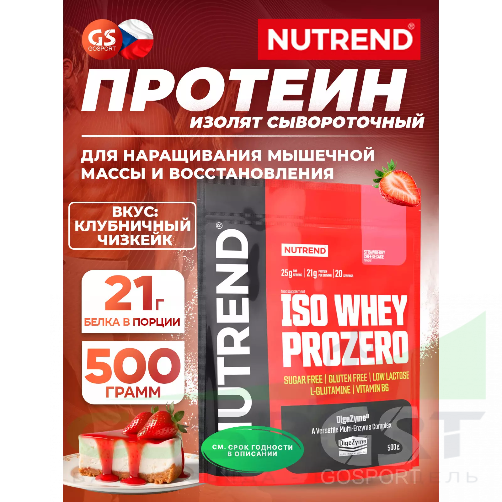 NUTREND Iso Whey Prozero 500 г, Клубничный чизкейк — Для наращивания мышечной массы и восстановления