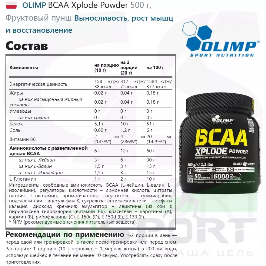 Ознакомьтесь с составом Olimp BCAA Xplode Powder.