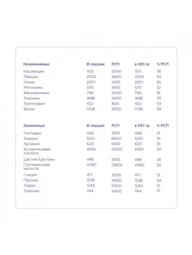 | Состав: 55,5% глюкозамина сульфат 2KCl, 11,1% хондроитина сульфат, 5,5% экстракт Босвеллии, 5,5% экстракт корня имбиря, 3,3% L-аскорбиновая кислота, 2,7% гиалуронат натрия, бисглицинат марганца (аминокислотный хелат марганца ALBION®) — 6,25 мг, в том числе марганца 1 мг; наполнитель Е460(i) — микрокристаллическая целлюлоза, агент антислеживающий Е470b — стеарат магния, капсула желатин, краситель Е171. | |
