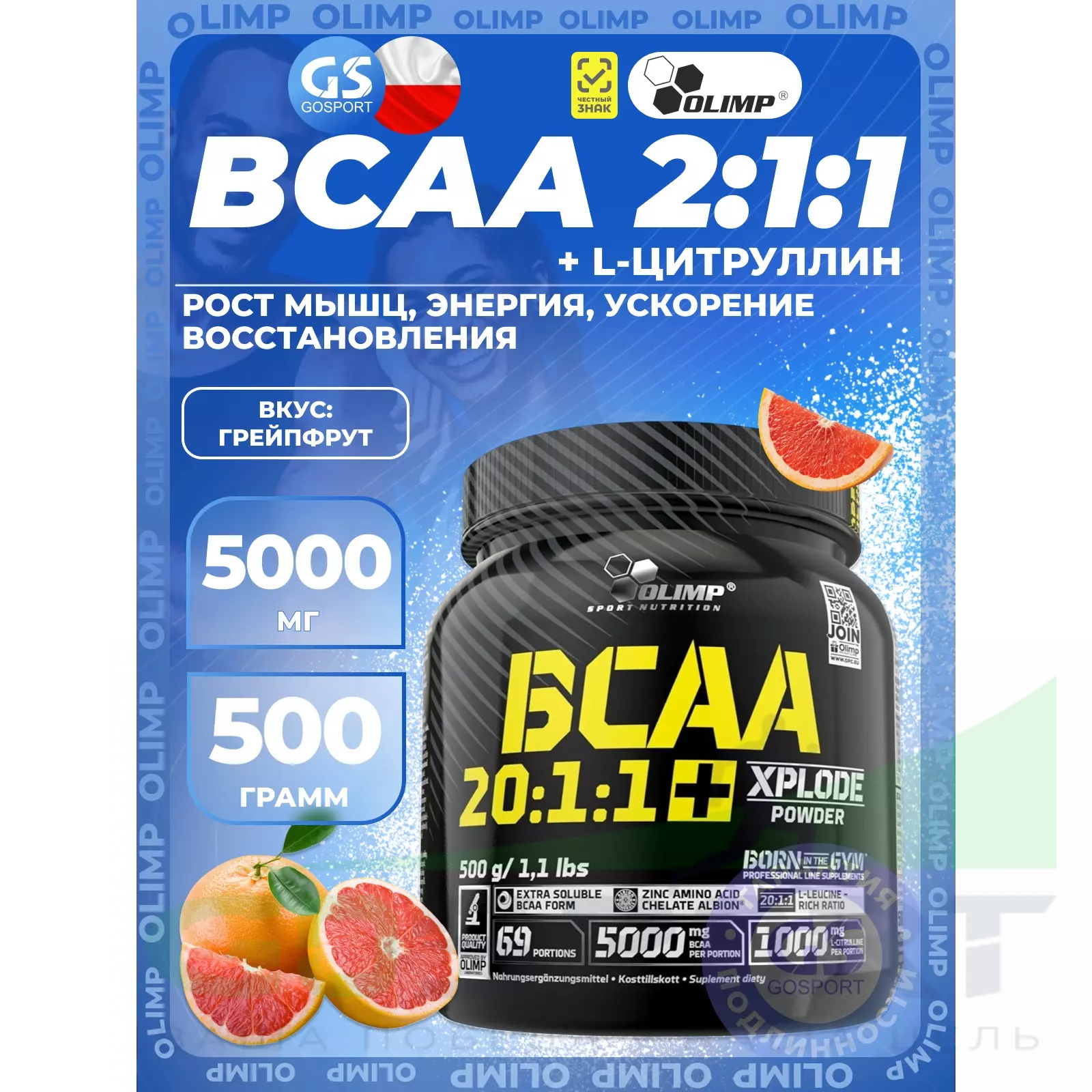 OLIMP BCAA XPLODE POWDER 20:1:1 500 г, Грейпфрут — Рост мышц, энергия, ускорение восстановление