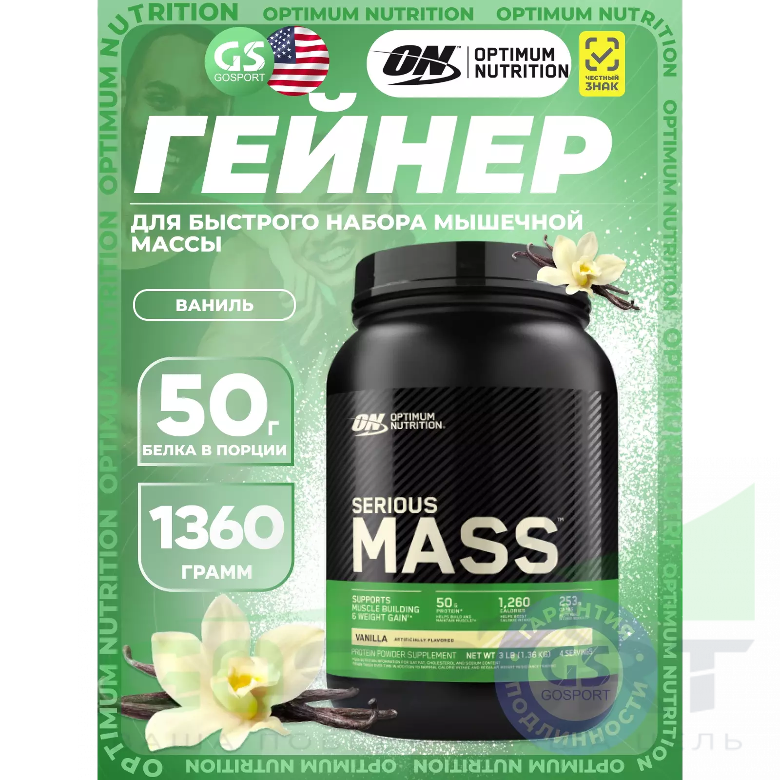 Serious Mass от компании Optimum Nutrition — это белково-углеводный продукт для набора массы. Этот многокомпонентный гейнер является комплексной высококачественной белковой смесью (сывороточный протеин, казеинат кальция, яичный альбумин). Содержит 26 витаминов и необходимых минералов, креатин, L-глютамин и пептиды. Моногидрат креатина, глютамин, холин и инозитол в составе помогают более эффективно провести тренировку. Принимать утром или во второй половине дня, до или после тренировки.