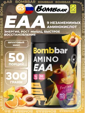 | Смесь Амино 2222 (сывороточный порошок, концентрат сывороточного протеина, изолят соевого протеина, микронизированная аминокислотная смесь (L-Лейцин, L-Изолейцин, L-Валин, L-Глутамин, L-Аргинин), гидролизованный сывороточный протеин, комплекс ферментов (амилаза, протеаза, целлюлаза, лактаза, липаза) | 5,3 г | ** |