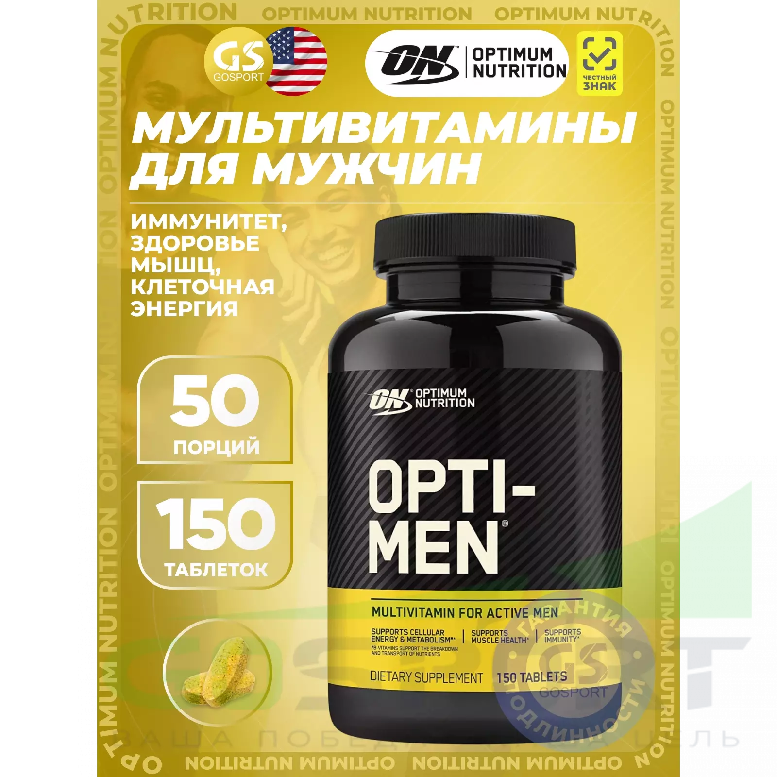 Фундаментальными строительными блоками человеческого тела являются витамины, минералы и другие незаменимые питательные вещества. Они обеспечивают прочную основу и отвечают за энергетический уровень в организме, нашу производительность и жизнеспособность. Opti-Men (Опти-Мен) является торговой маркой мирового производителя Optimum Nutrition, представляющая собой полный комплекс питательных веществ, скомпонованный из 75 ключевых ингредиентов, объединенный в оптимально сбалансированную питательную систему.