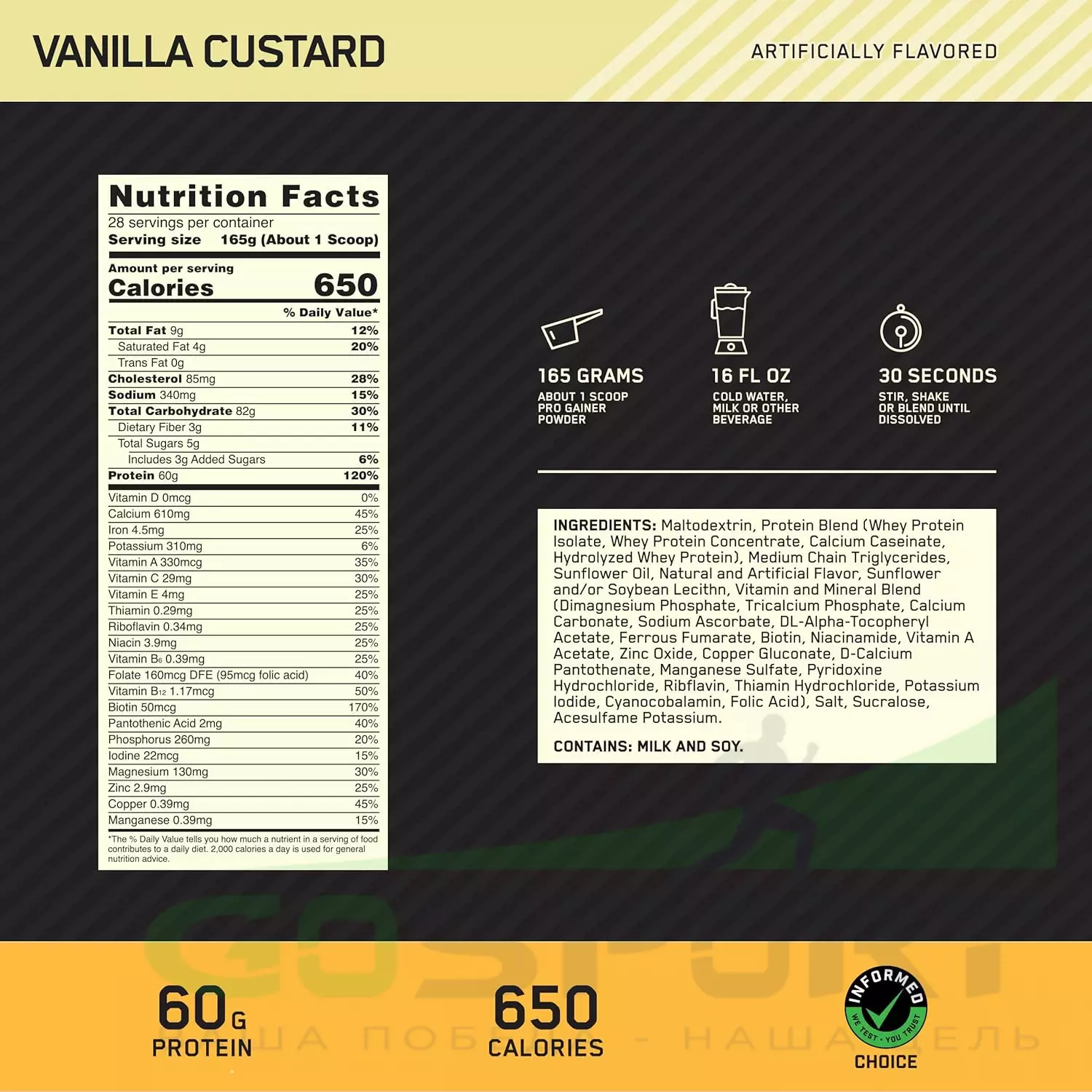 Описание Optimum Nutrition Pro Gainer
