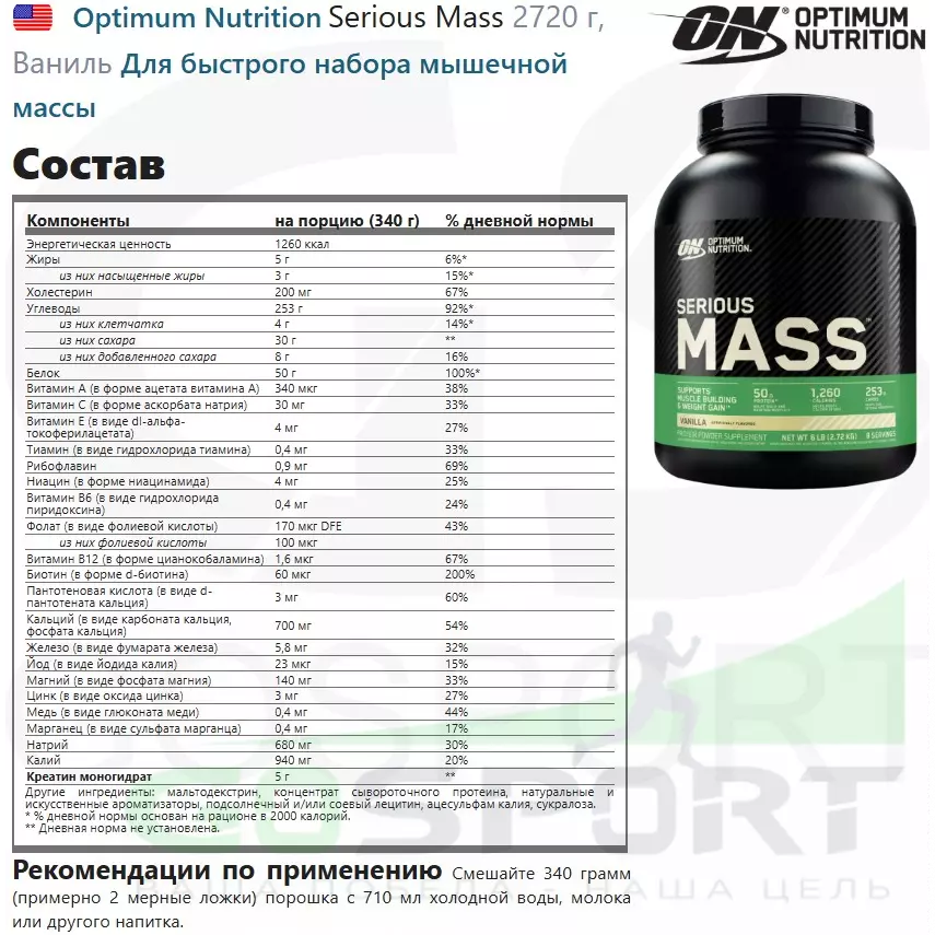 Описание Optimum Nutrition Serious Mass