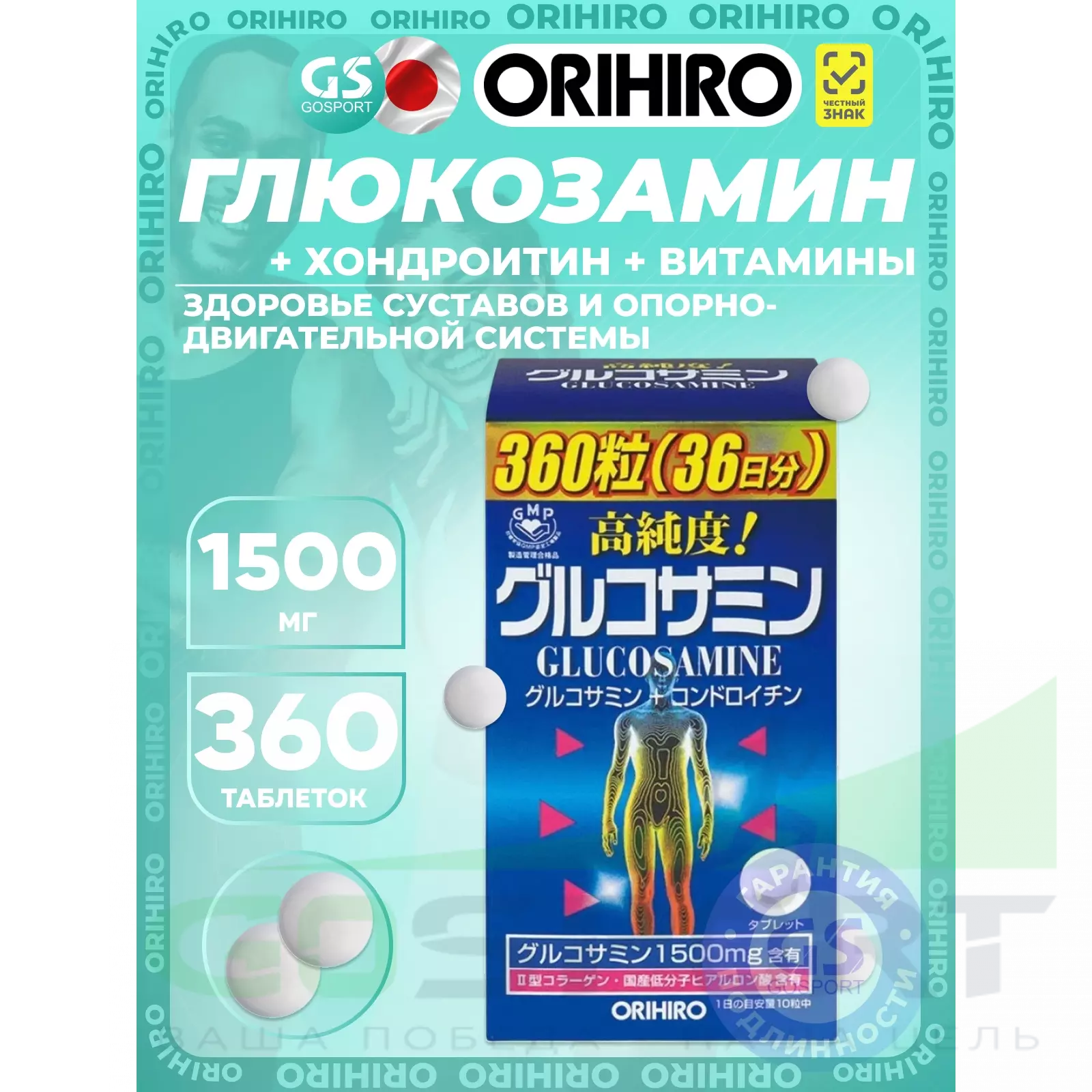 Orihiro Глюкозамин с хондроитином и витаминами 360 таблеток — Здоровье суставов и опорно-двигательной системы