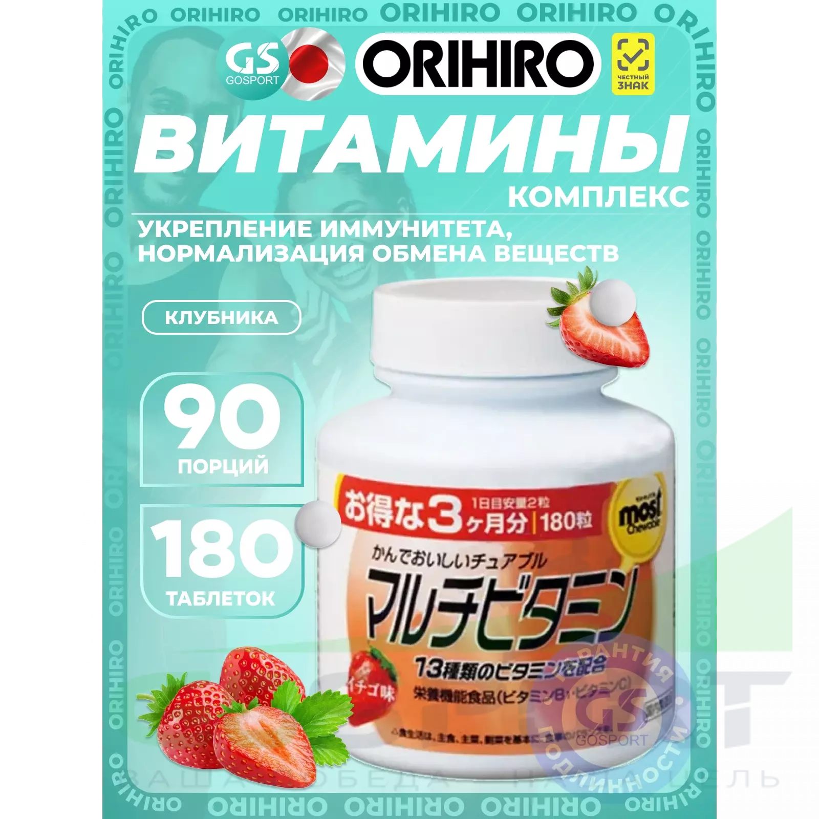 12 витаминов в одной таблетке с приятным вкусом! Оптимально сбалансированный состав, витамины в виде небольших таблеток со вкусом клубники для поддержания сил, красоты и здоровья. Это ваш залог отличного самочувствия каждый день! Принимая витамины ОРИХИРО, вы делаете лучший вклад в собственное здоровье.